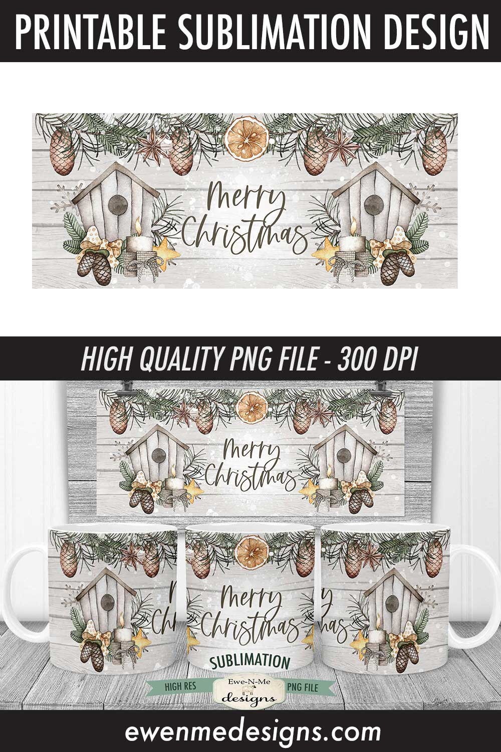 Christmas Bird Houses Mug Sublimation Design | Printable 11 oz. and 15 oz. Mug Sublimation Wrap PNG