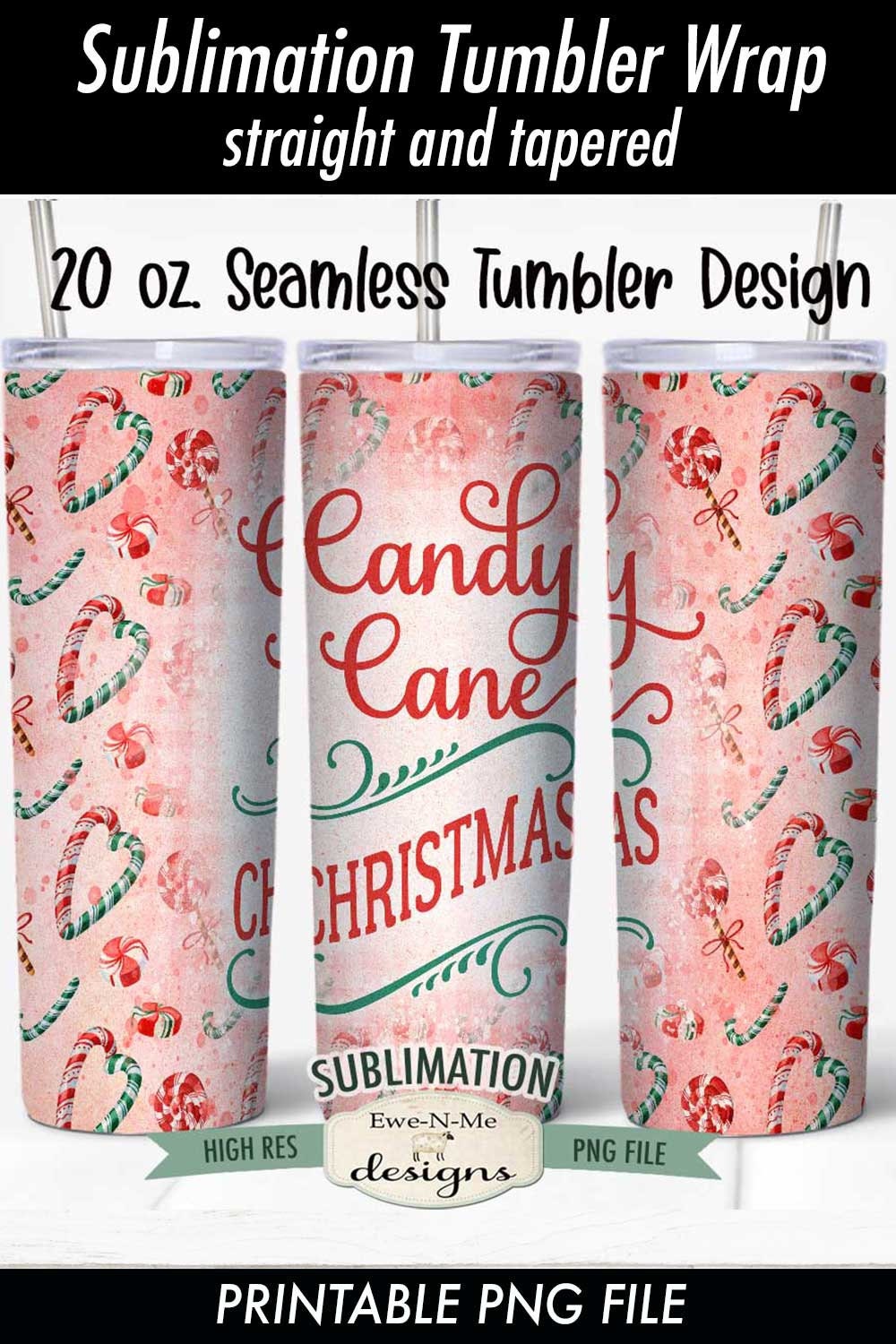 Candy Cane Christmas Tumbler Sublimation Design - Sublimation for 20 oz. Tumbler Straight and Tapered