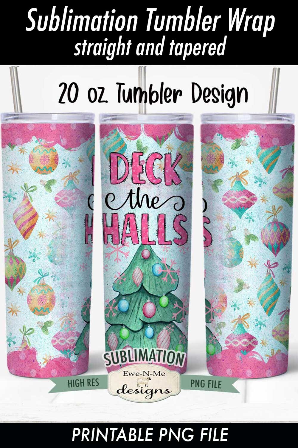Deck The Halls Christmas Tumbler Sublimation Design - Sublimation for 20 oz. Tumbler Straight and Tapered