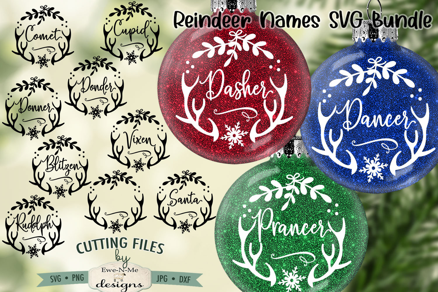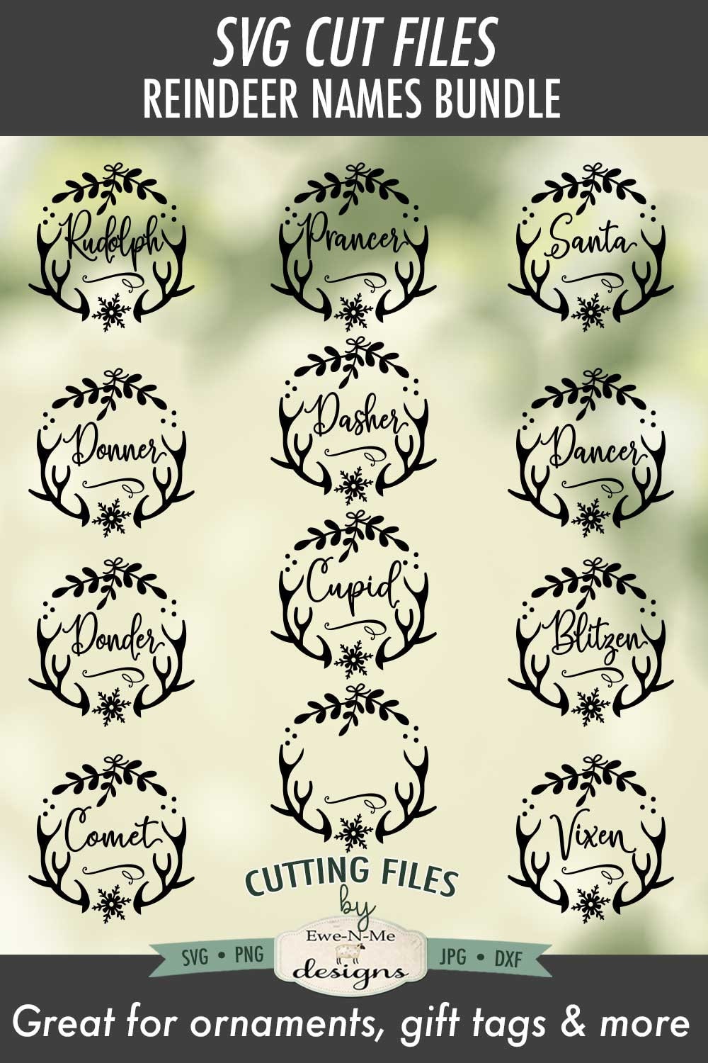 Reindeer Names - Round Reindeer Names with Antlers