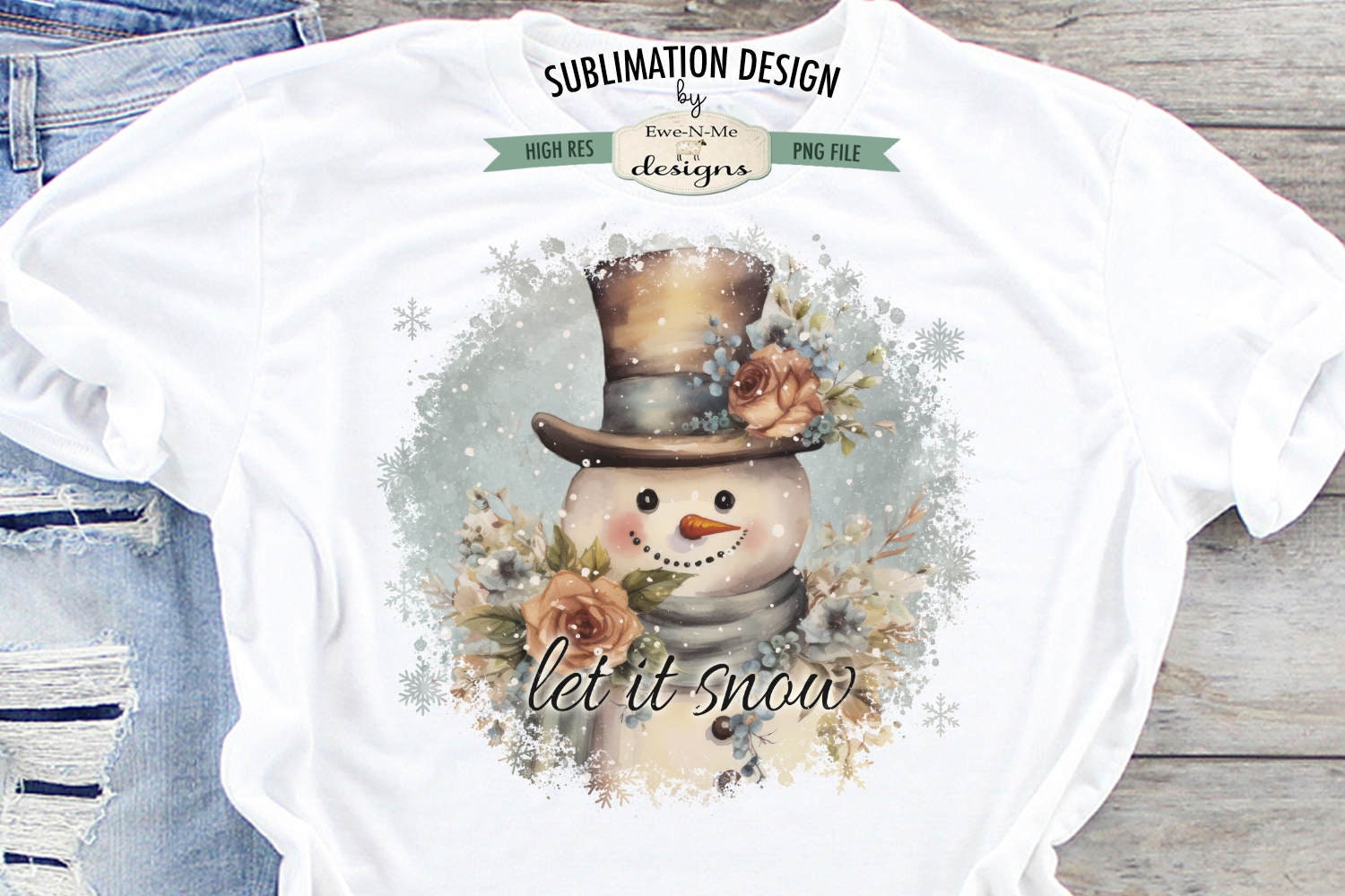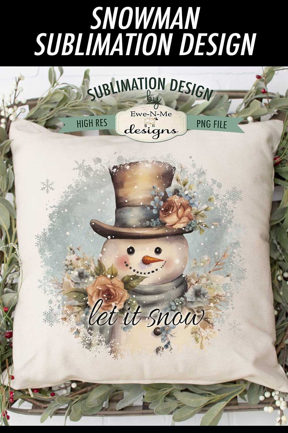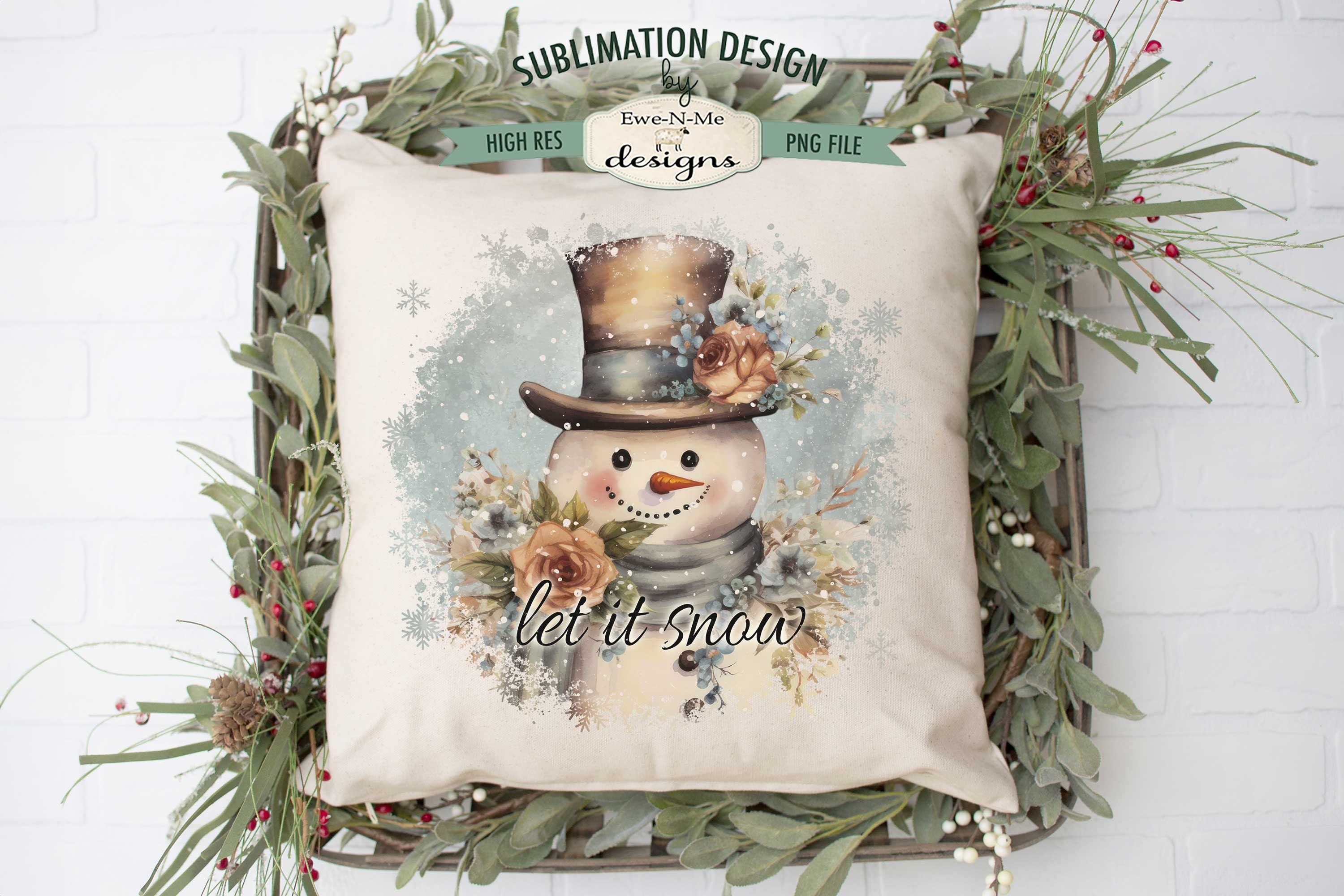 This design makes for a great sign for the holidays, featuring the words Let It Snow with a vintage Snowman. This is a printable PNG file, this is not a finished pillow, or shirt. This is not a cutting file.