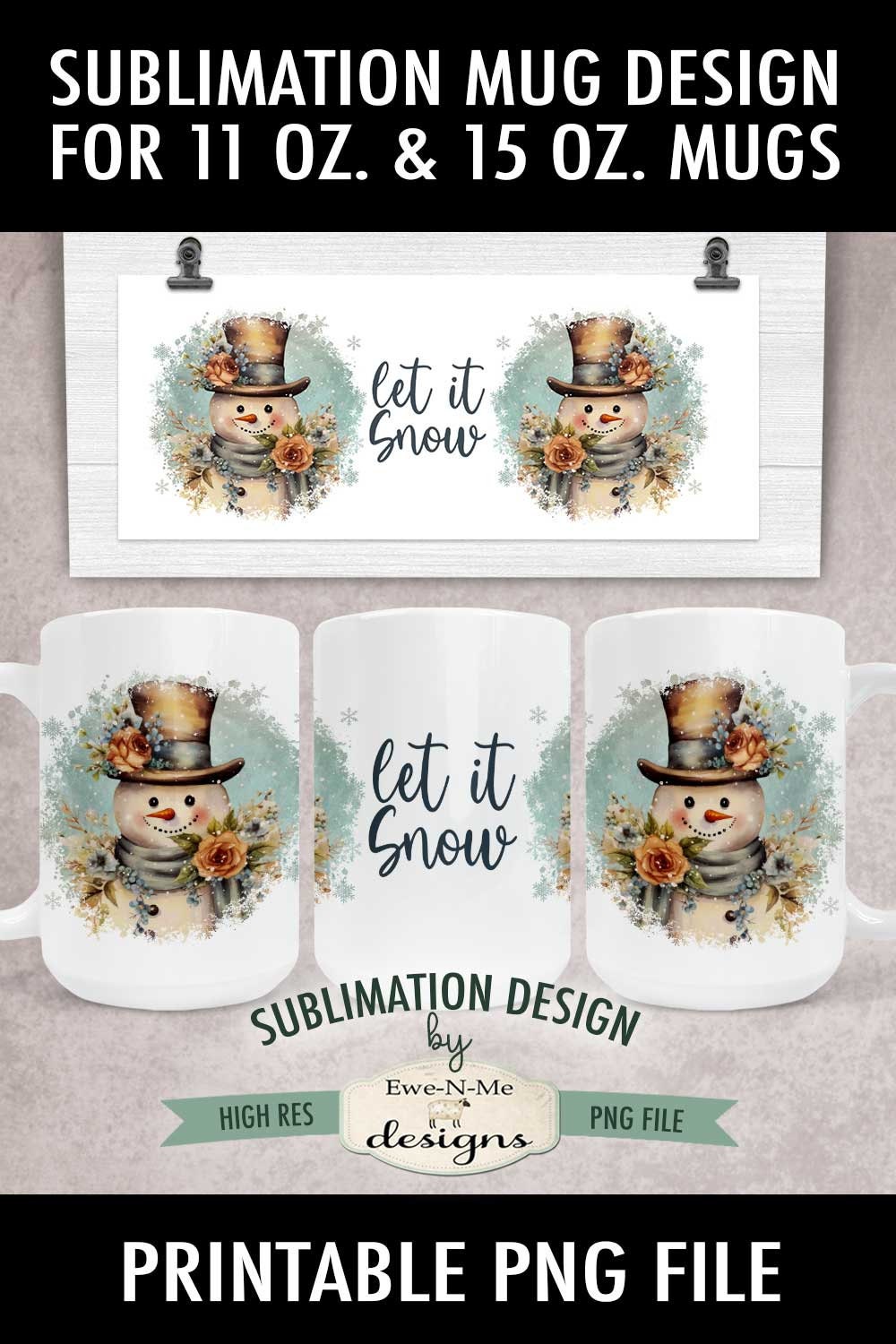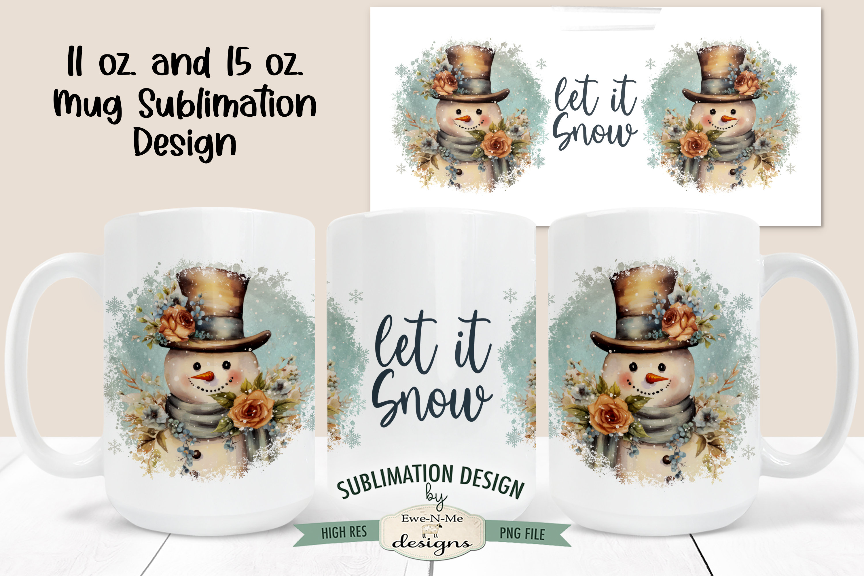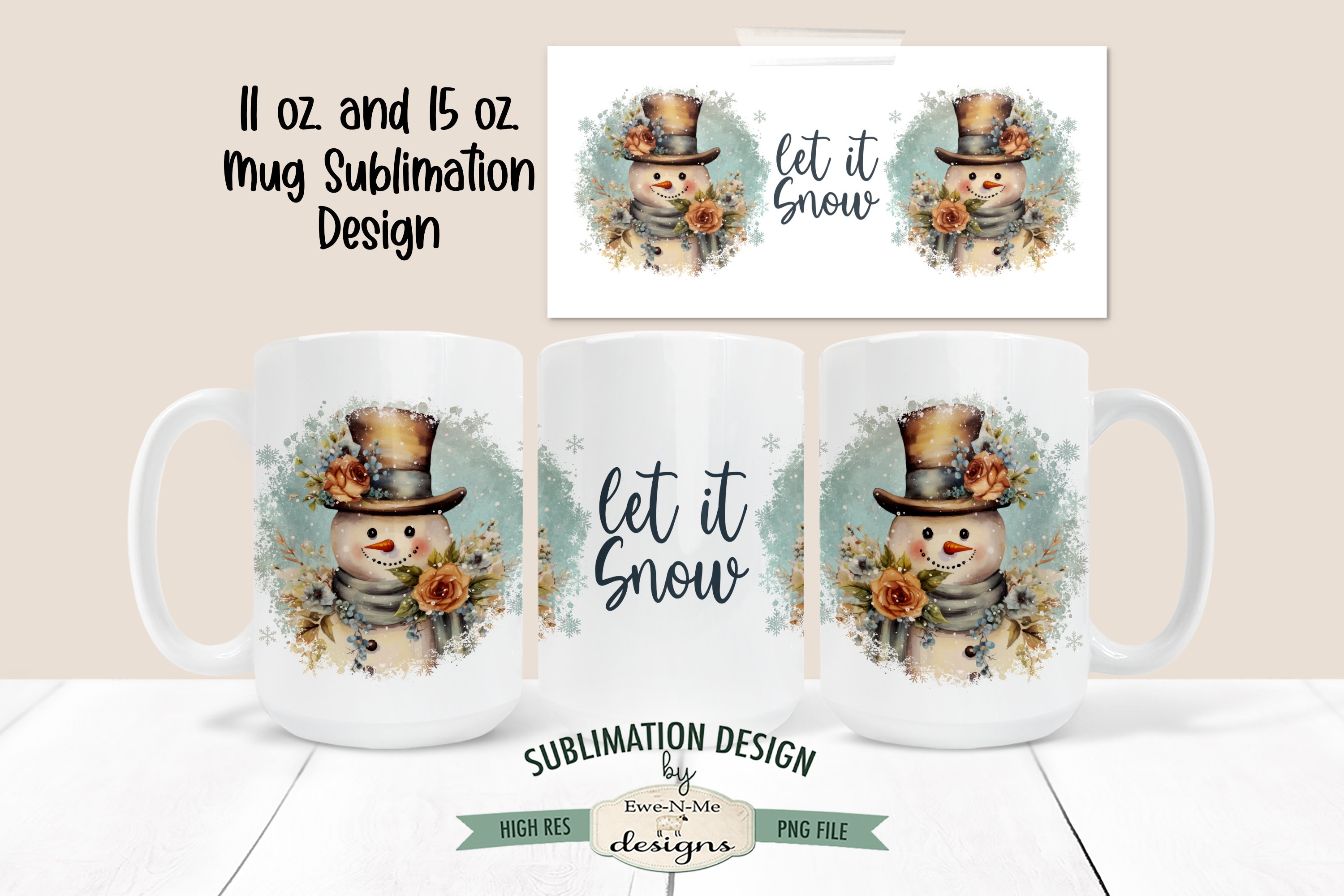 Vintage Snowman Sublimation Design | Rustic Christmas Mug | Printable 11 oz. and 15 oz. Mug Sublimation Wrap PNG
