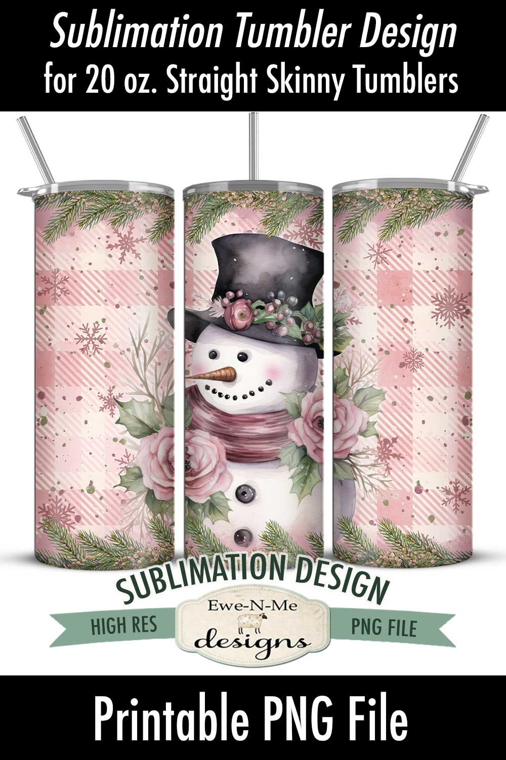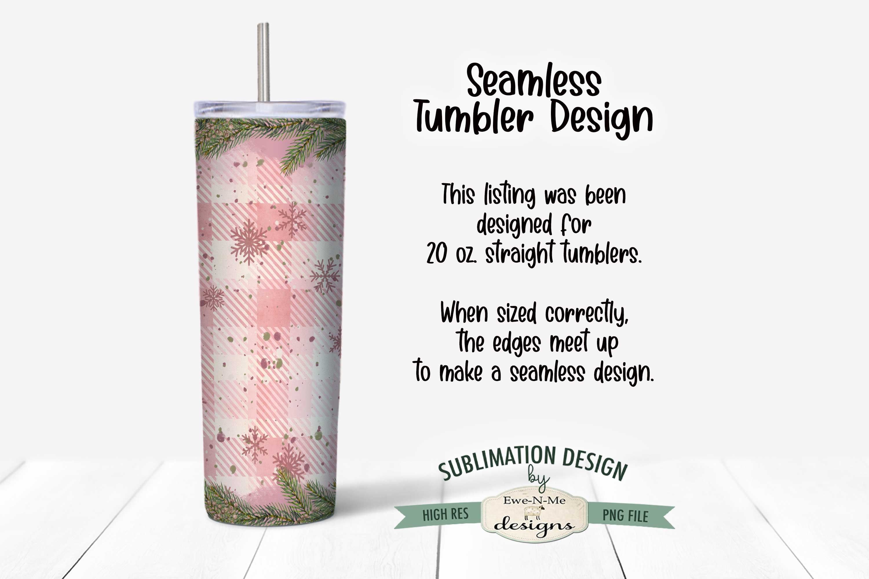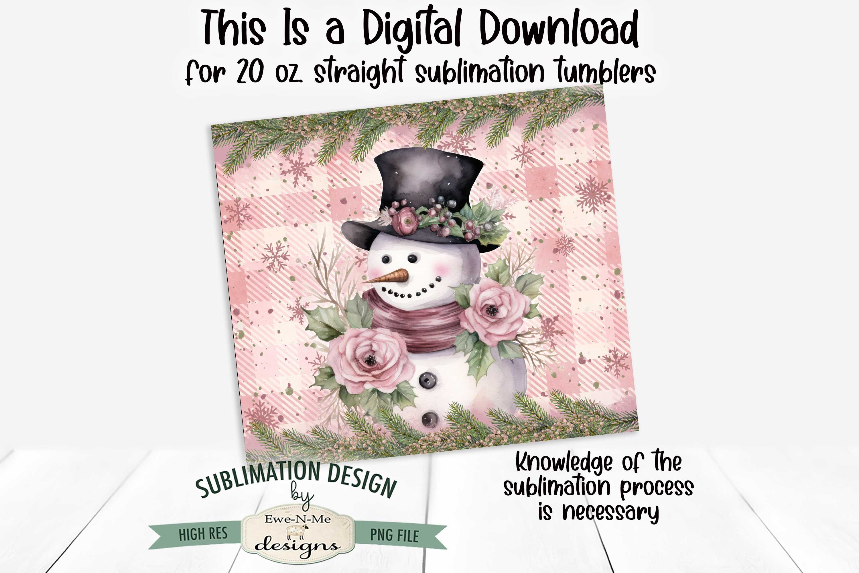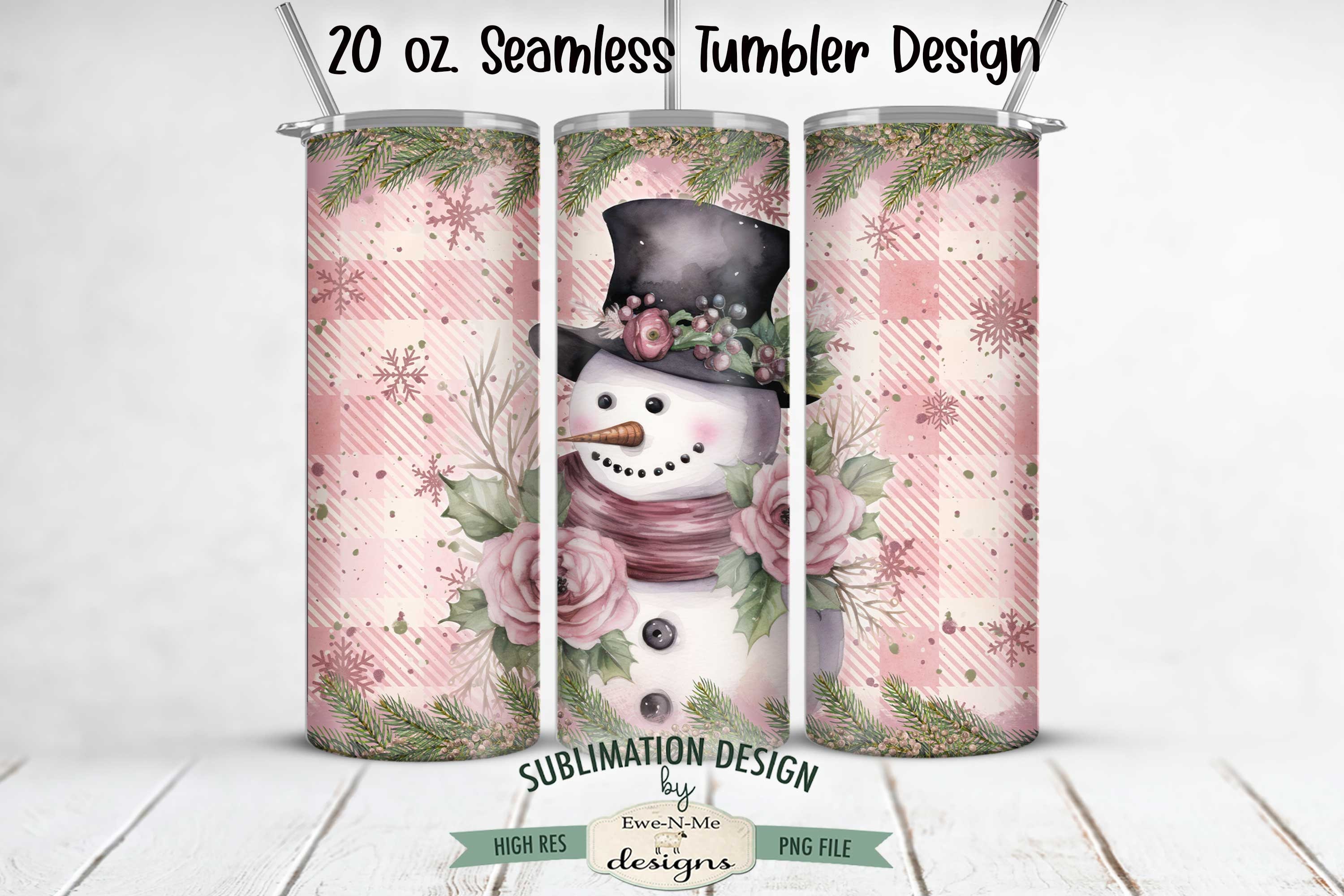 Plaid Pink Snowman SEAMLESS 20 oz. Christmas Tumbler Sublimation Design | Winter Pink Christmas Snowman Tumbler Design