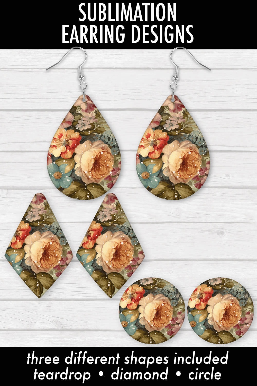 Victorian Floral Sublimation Earring Designs | 3 PNG Shapes | Victorian Rose Valentine Earring Designs