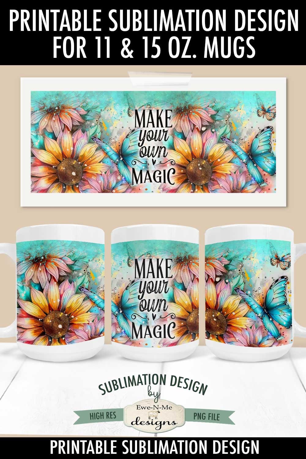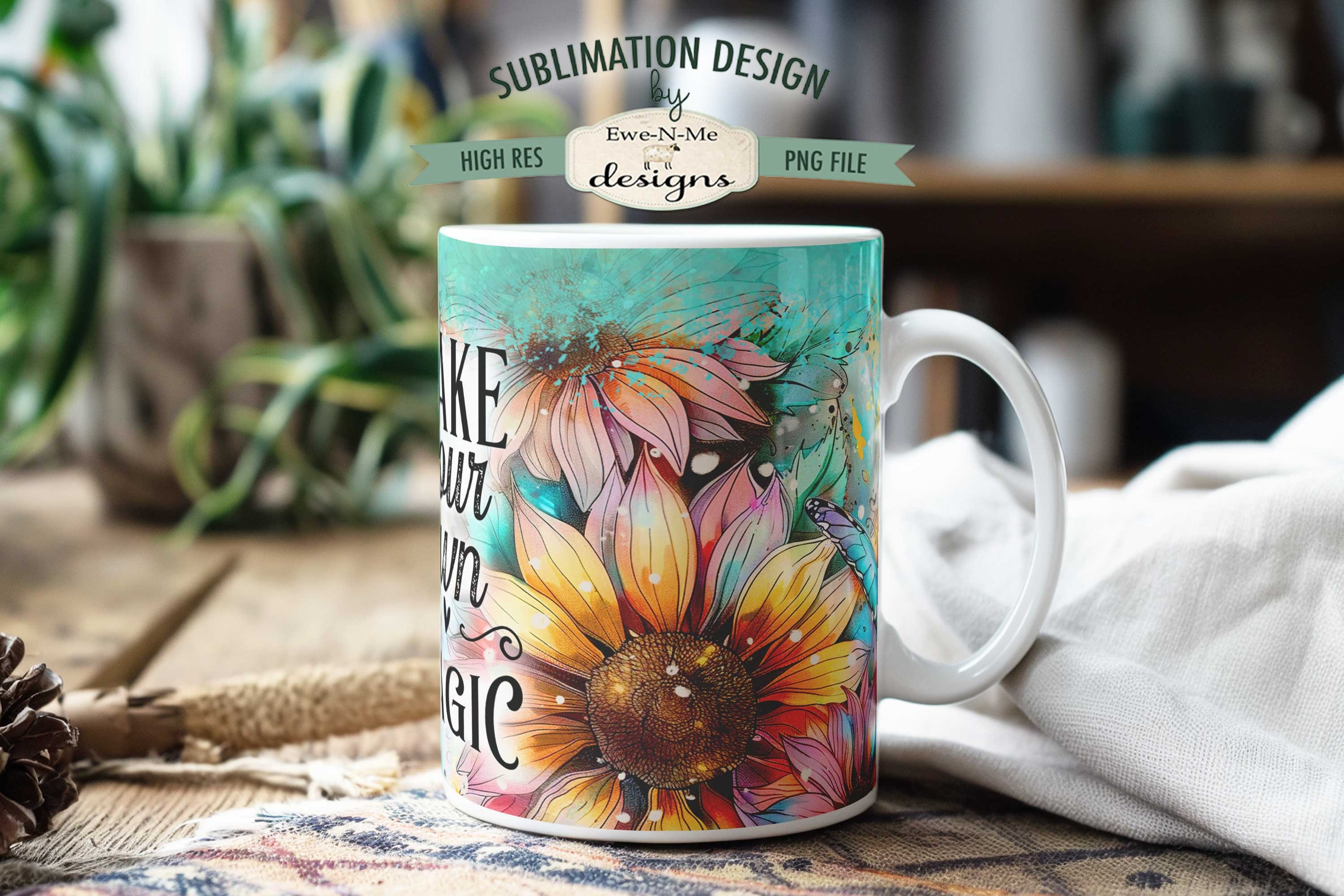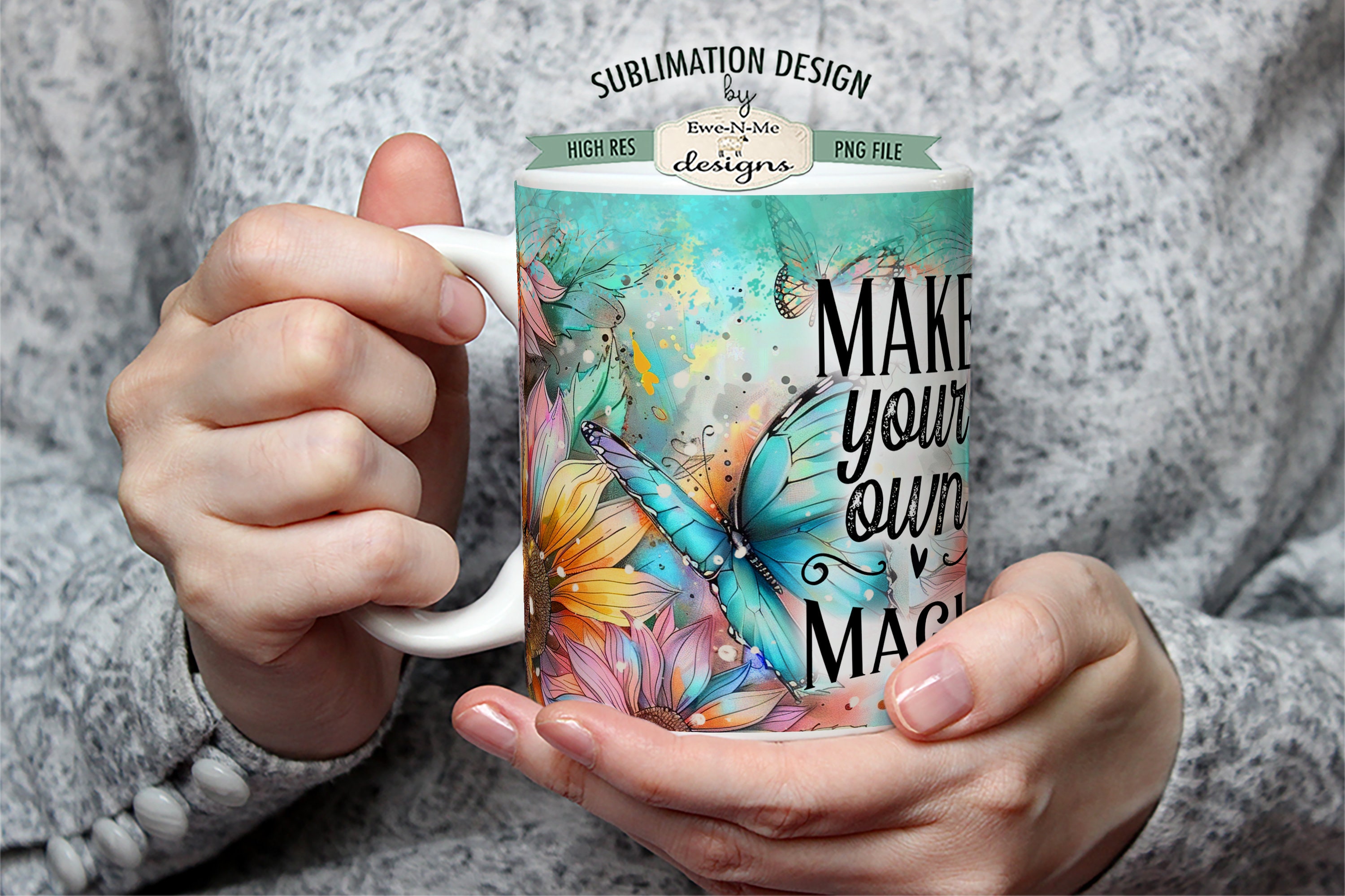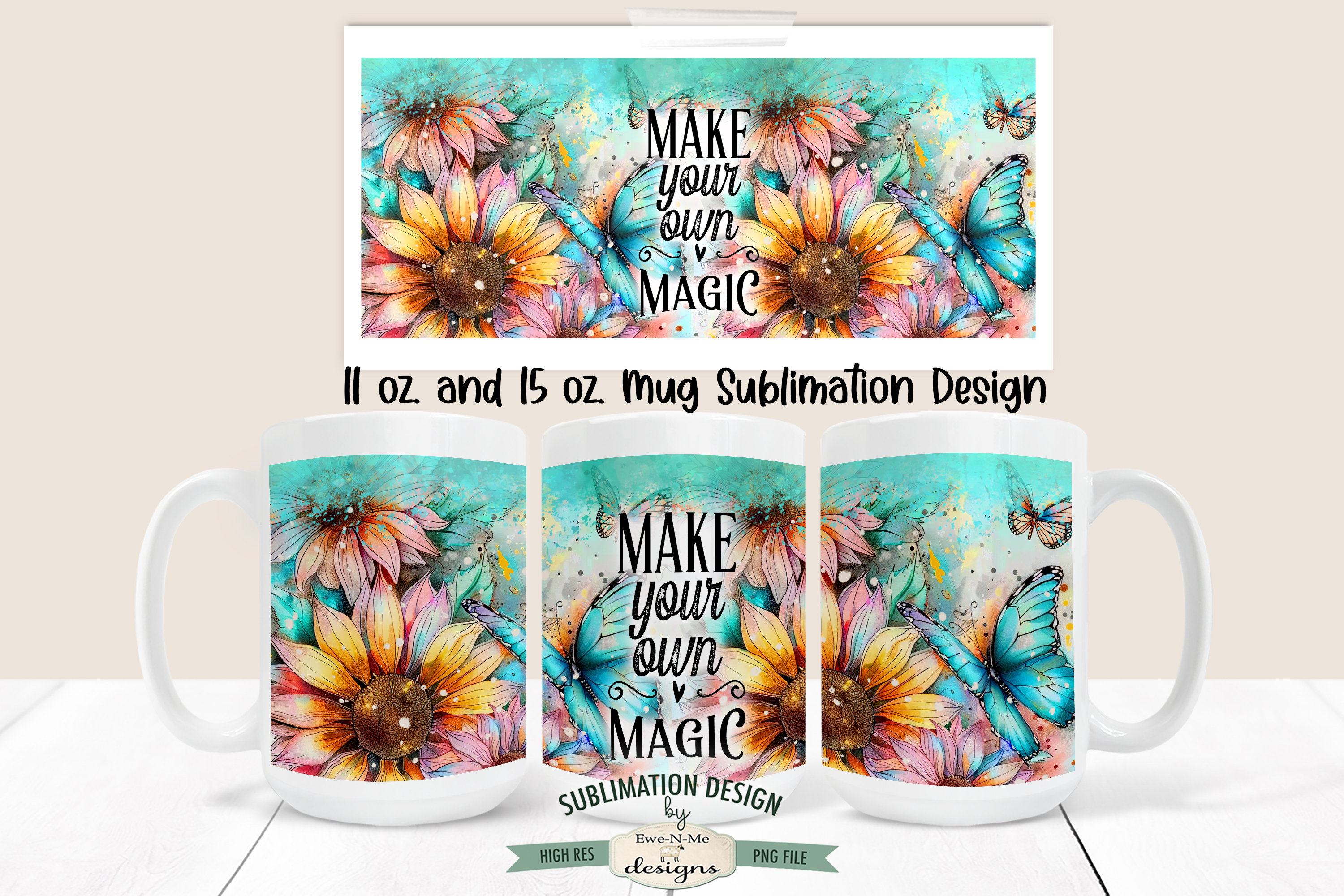 Make Your Own Magic Sunflower Butterfly Mug Design - Sunflowers and Butterfly - Floral 11 and 15 oz. Mug Sublimation Wrap PNG