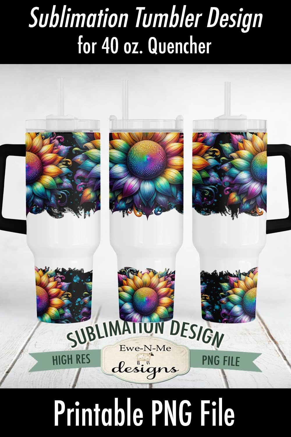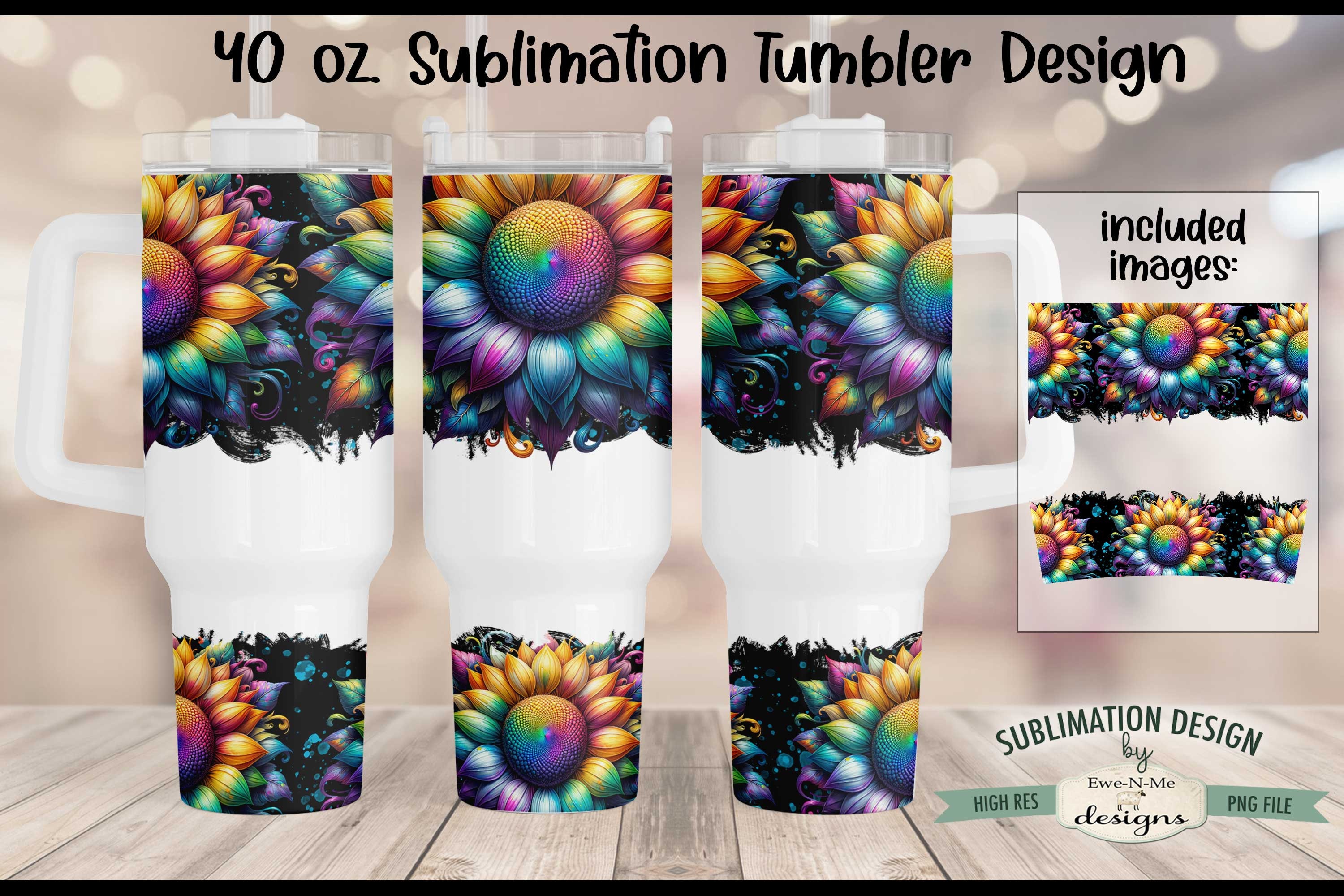 A colorful sunflower set on a black background make up this beautiful sublimation design for 40 oz tumblers. This is a gorgeous design and would make a great tumbler for Mom.