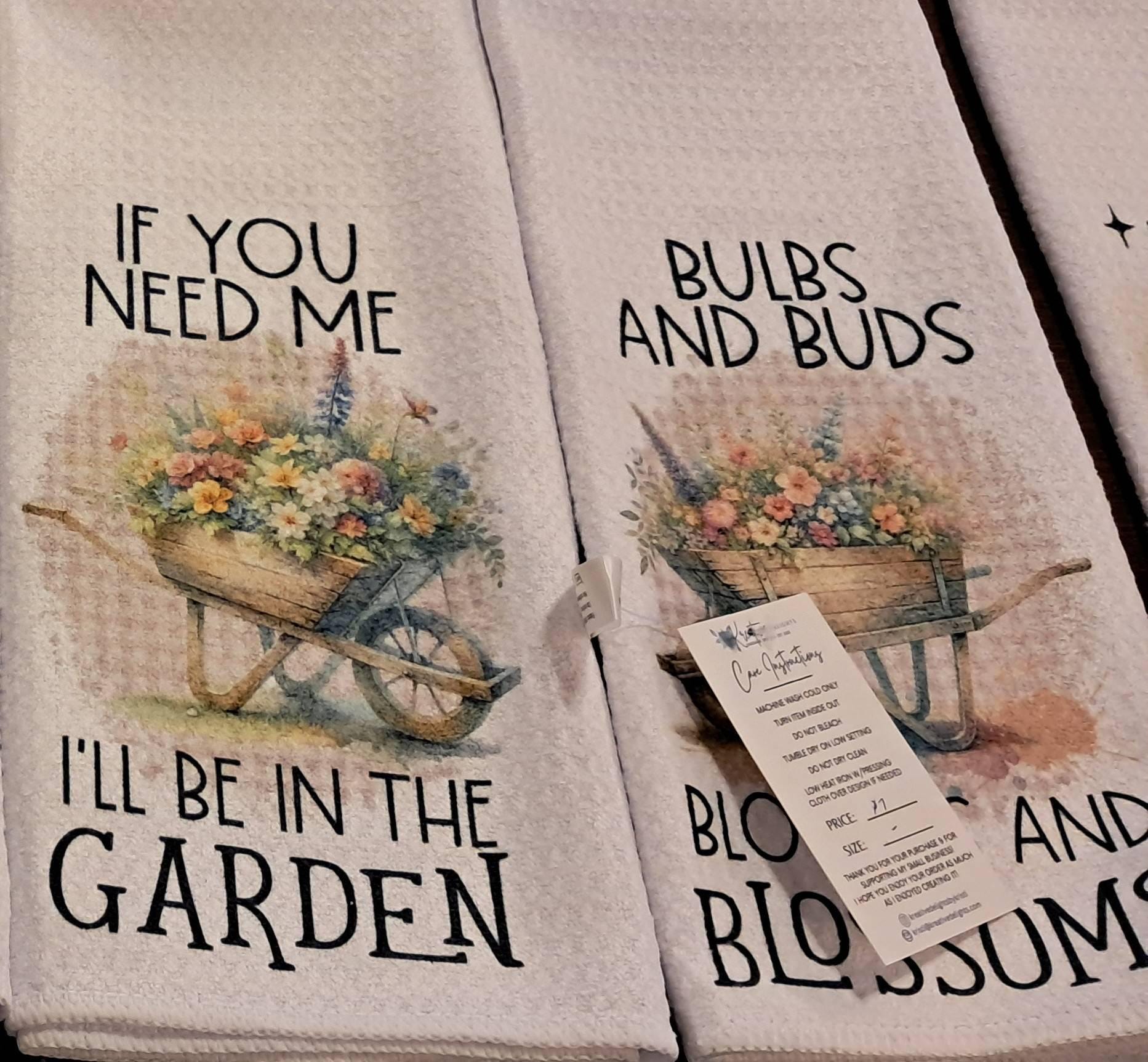 Spring Flowers Wheelbarrow Towel Sublimation Design - Kitchen Towel Spring Flower Sublimation Designs - In The Garden - Blooms and Blossoms