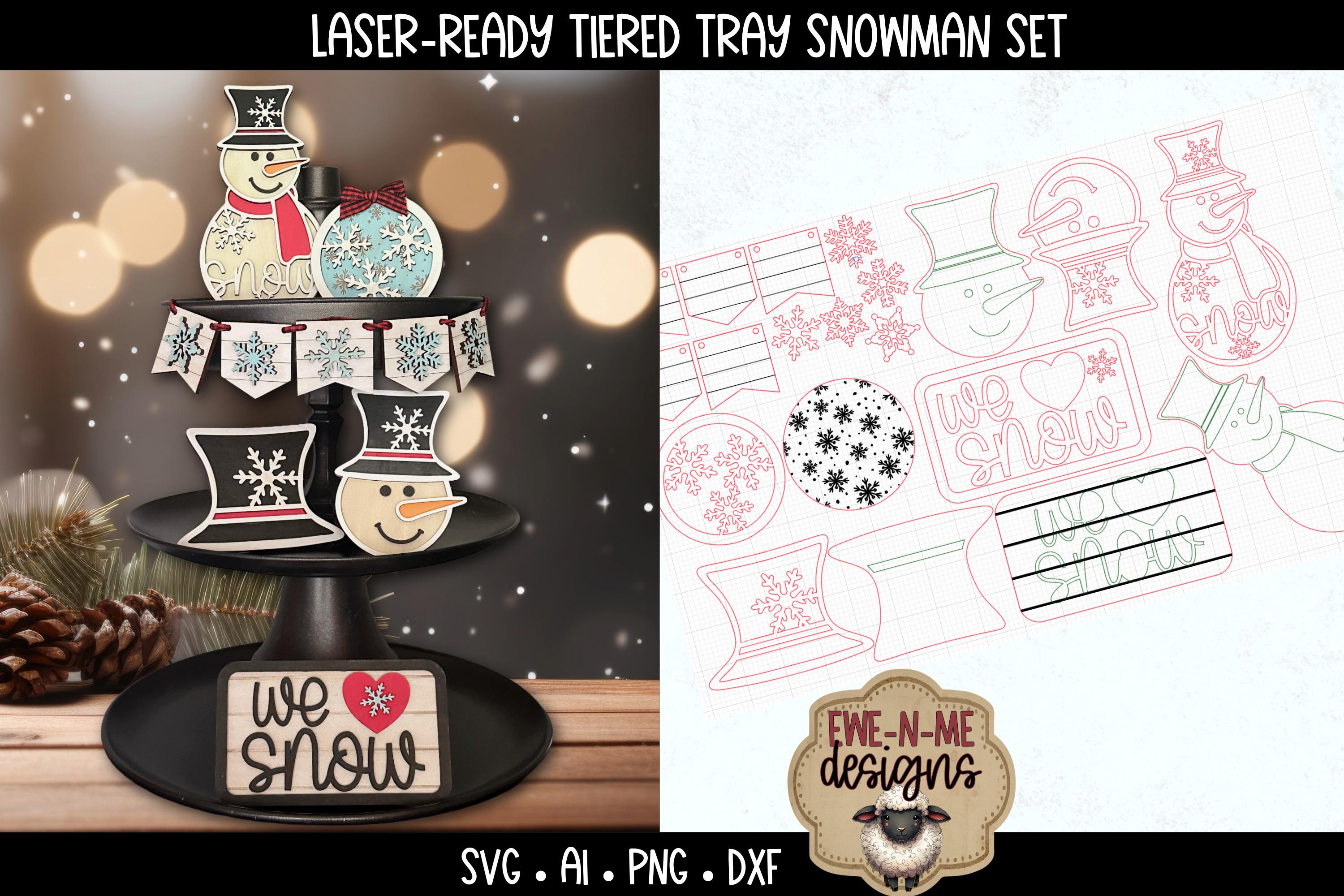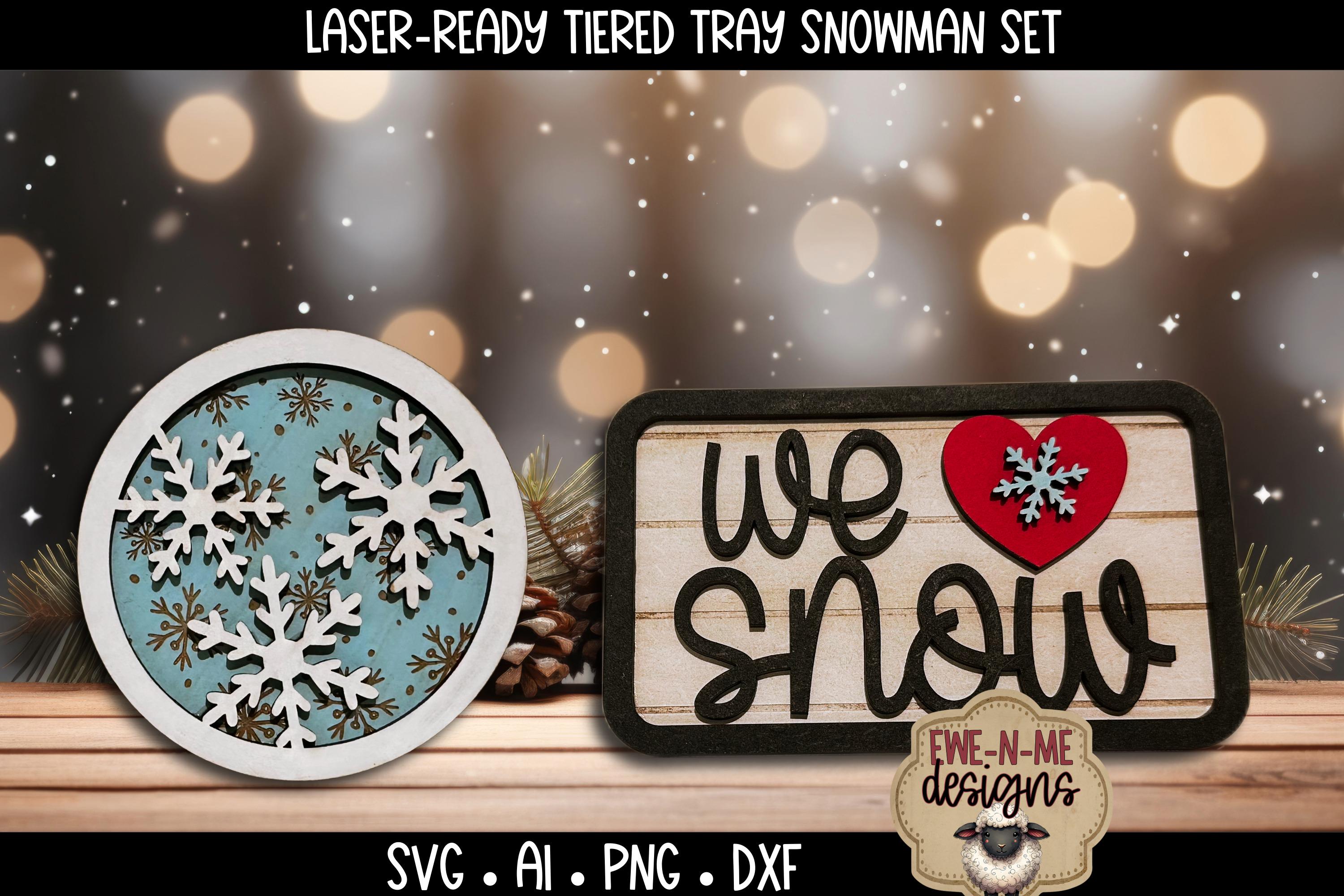 Bring farmhouse charm to your winter decor with this Snowman Tiered Tray Laser Cut File Set! This rustic design is perfect for laser machines such as Glowforge, XTool and other laser cutters. This is a Lightburn friendly file.