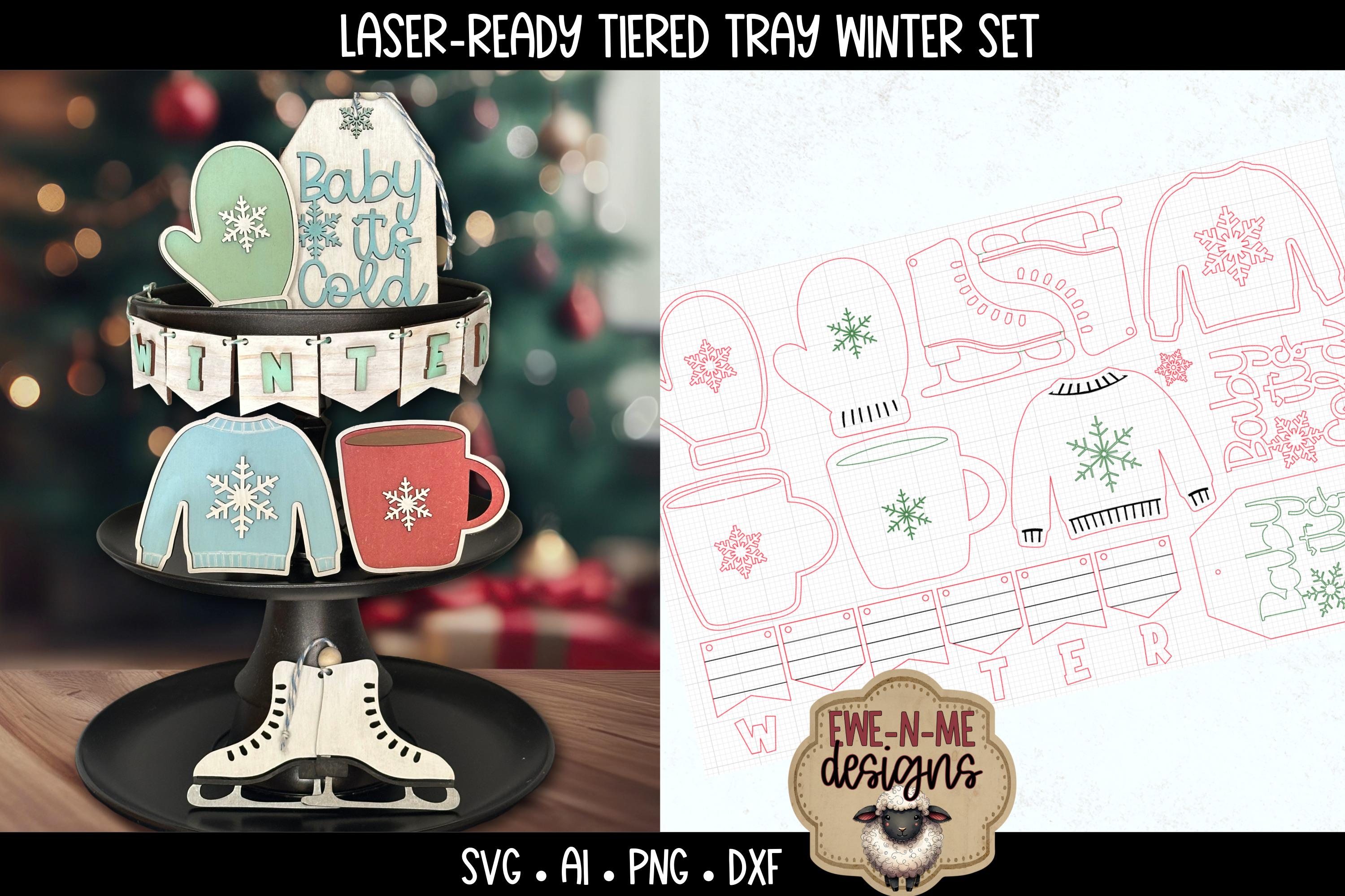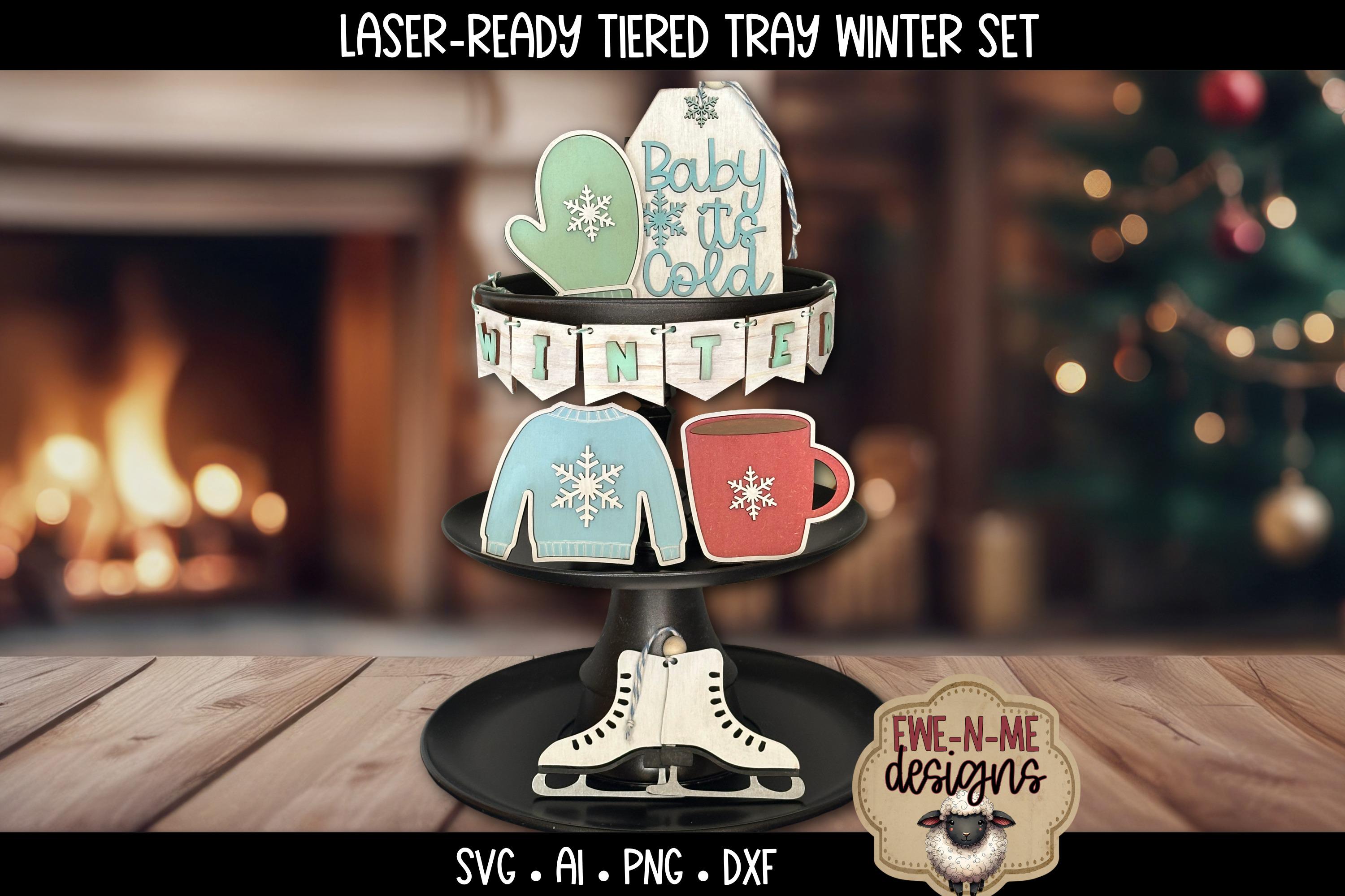 Cozy up your tiered tray decor with this Winter Laser Cut File Set! This rustic farmhouse collection includes everything you need to create a complete winter display with your laser cutting machine.