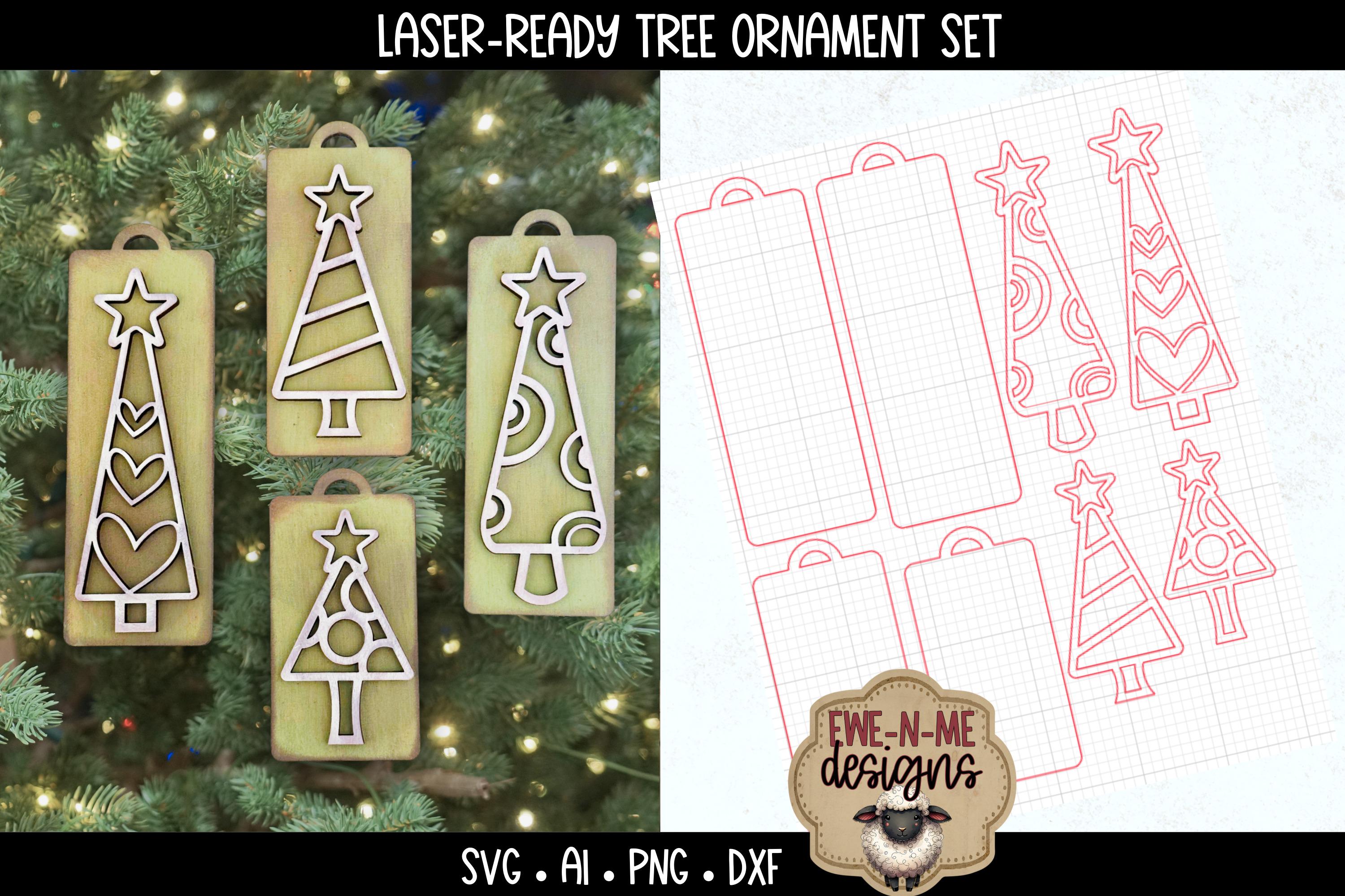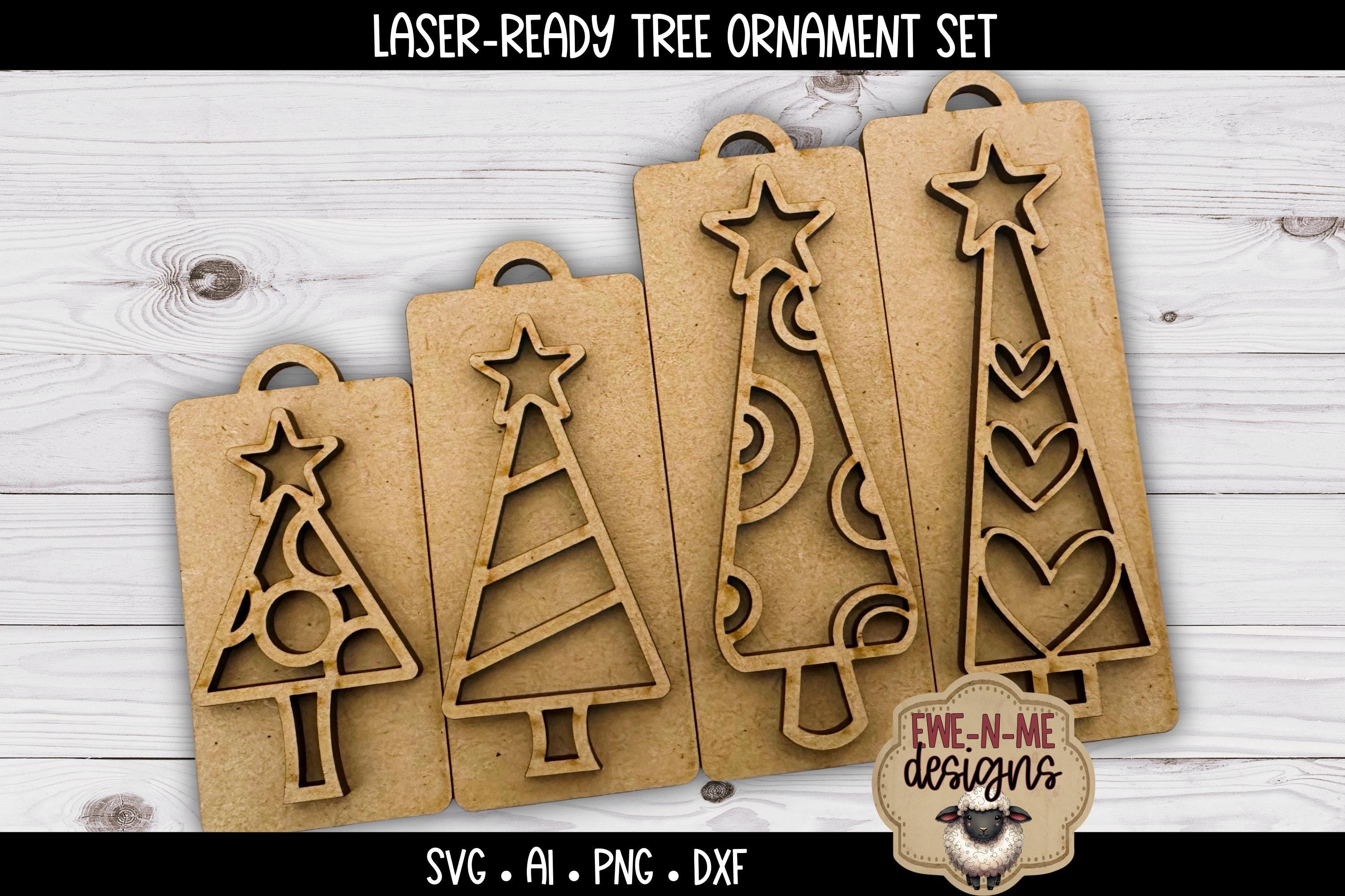 This festive digital download includes 4 unique Christmas tree designs, each featuring delightful hearts, swirls, and whimsical patterns perfect for laser cutting. These make great ornaments or package tie-ons.