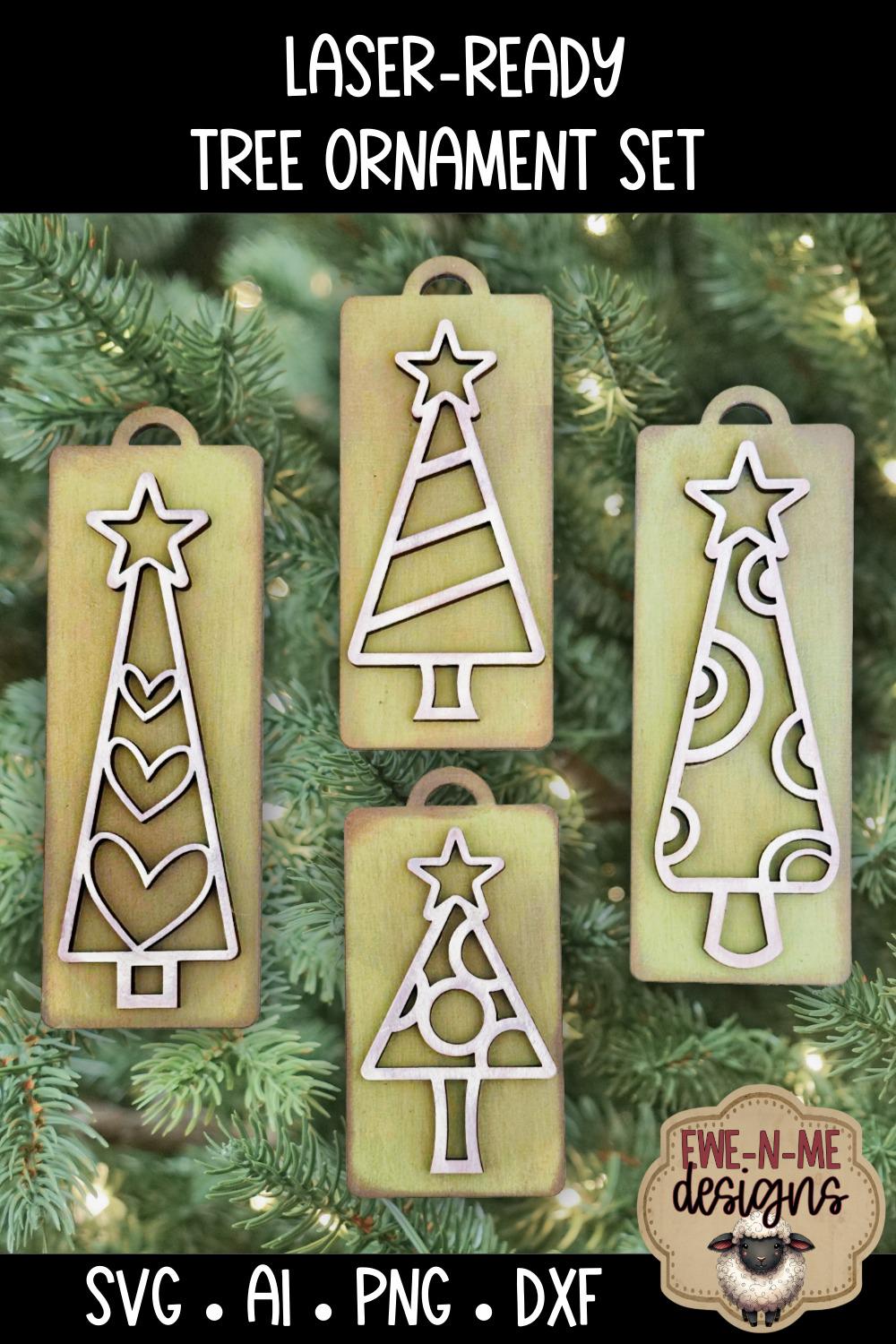 4 high-quality Christmas Tree SVG designs with tage shaped backer