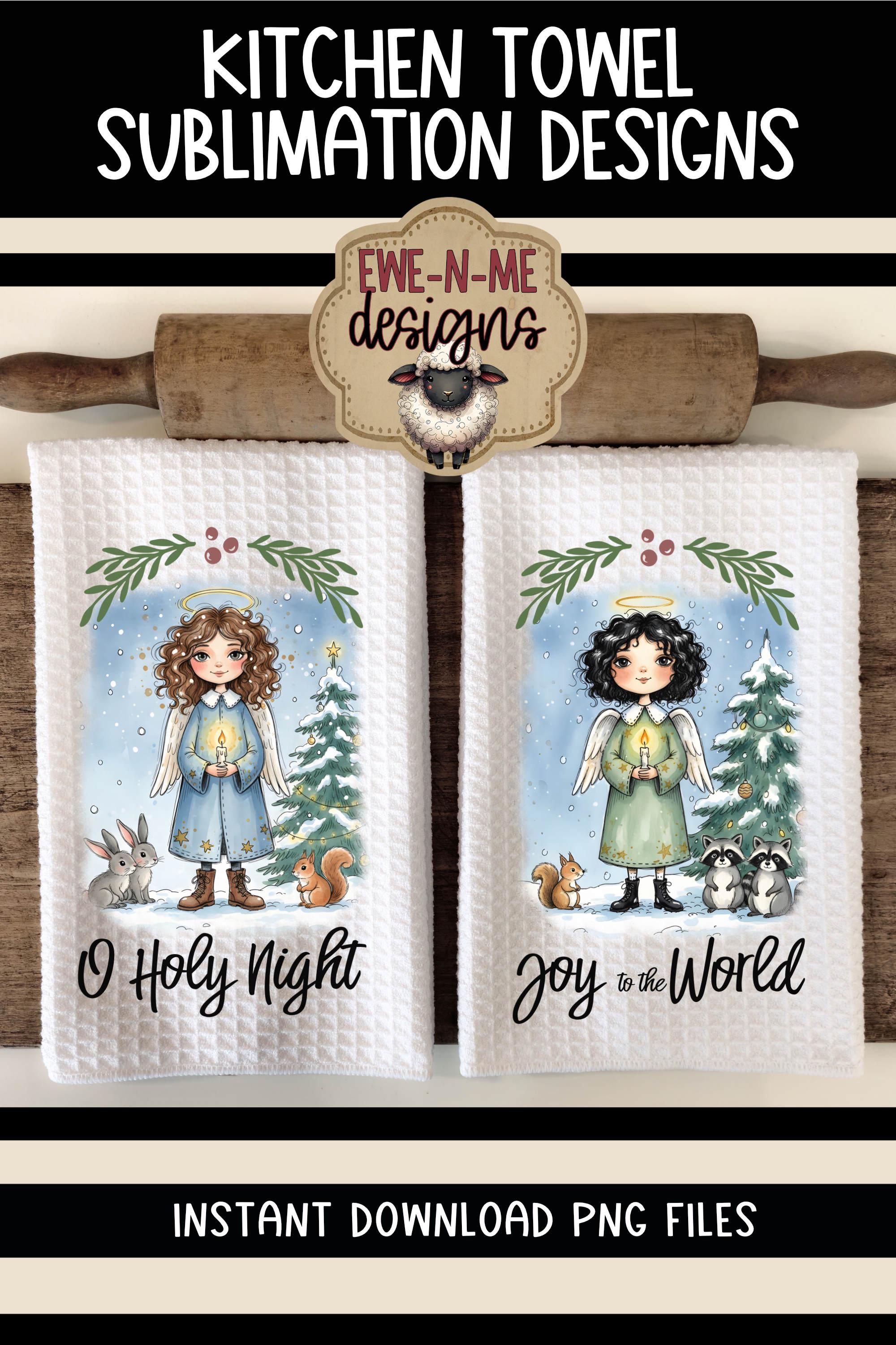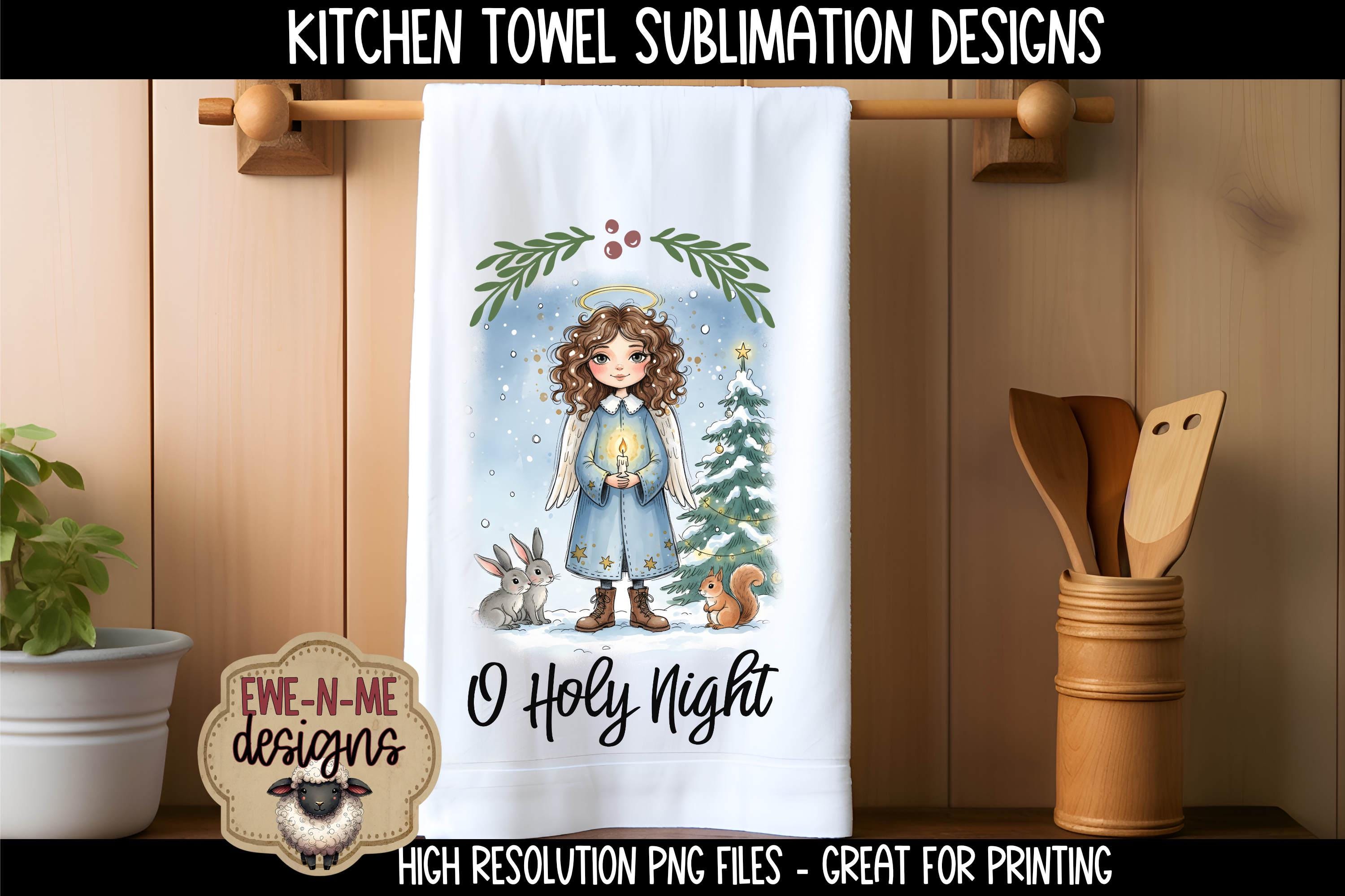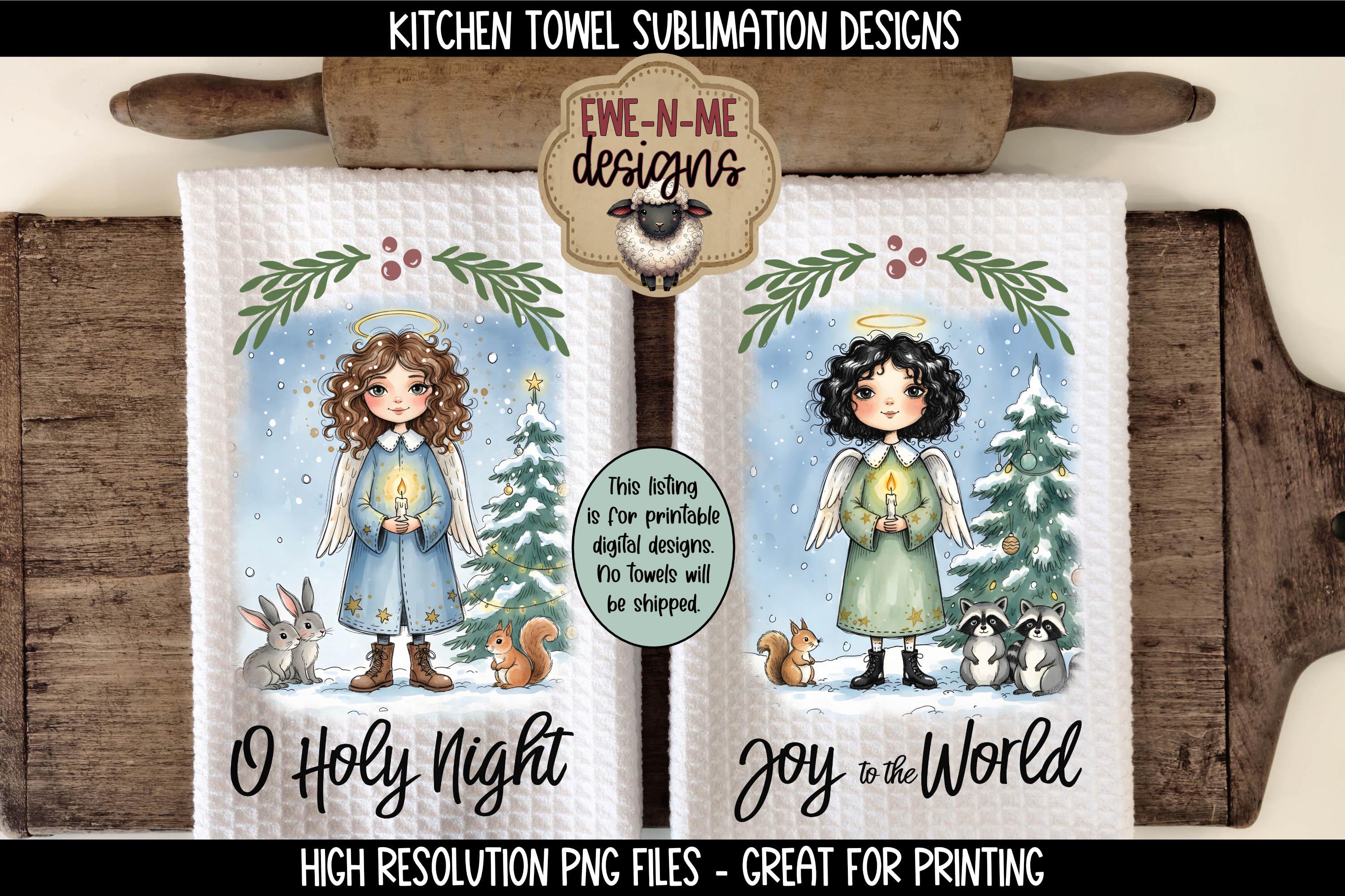 Christmas Angels Kitchen Towel Sublimation Design - O Holy Night - Joy To The World - Christmas Kitchen PNG