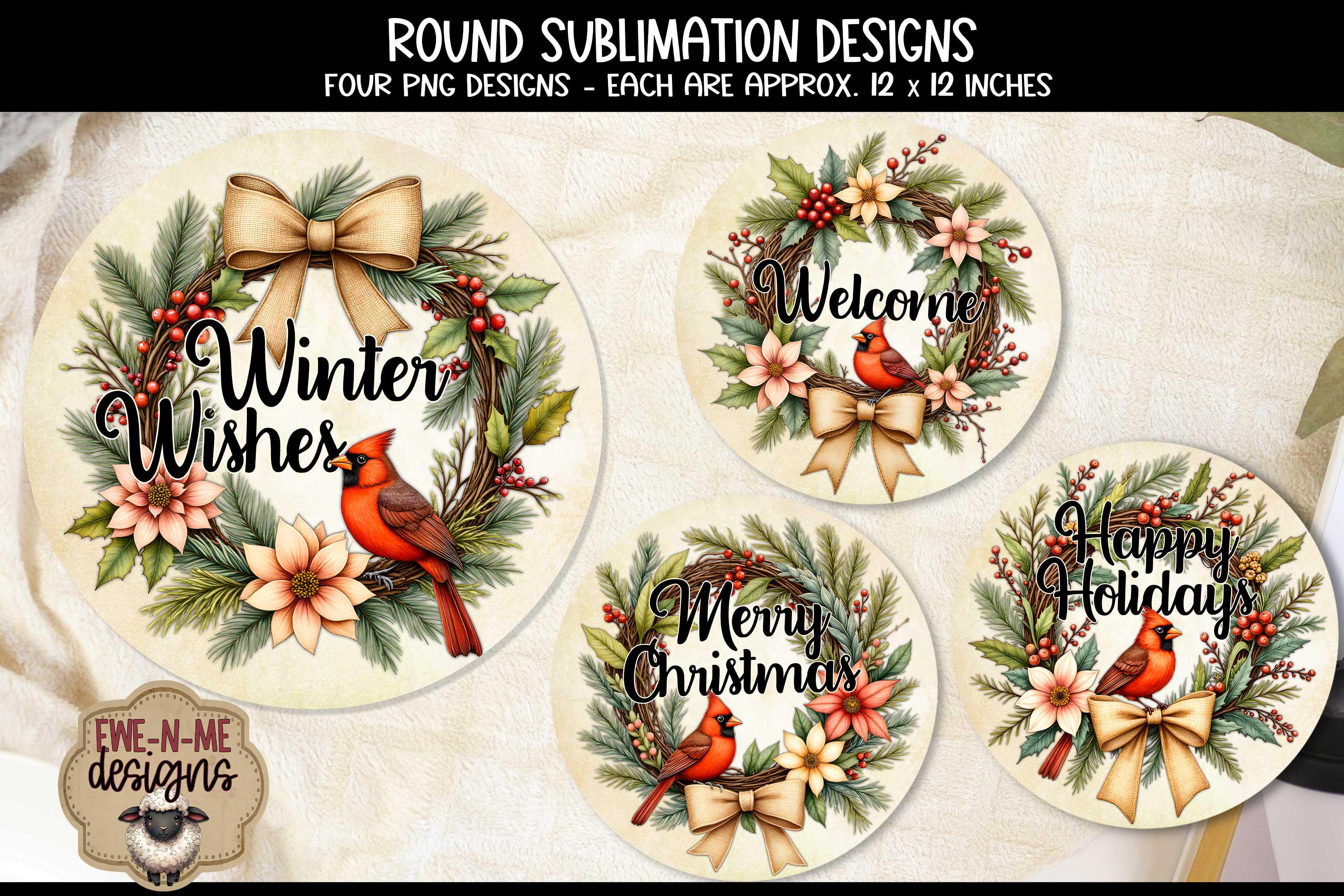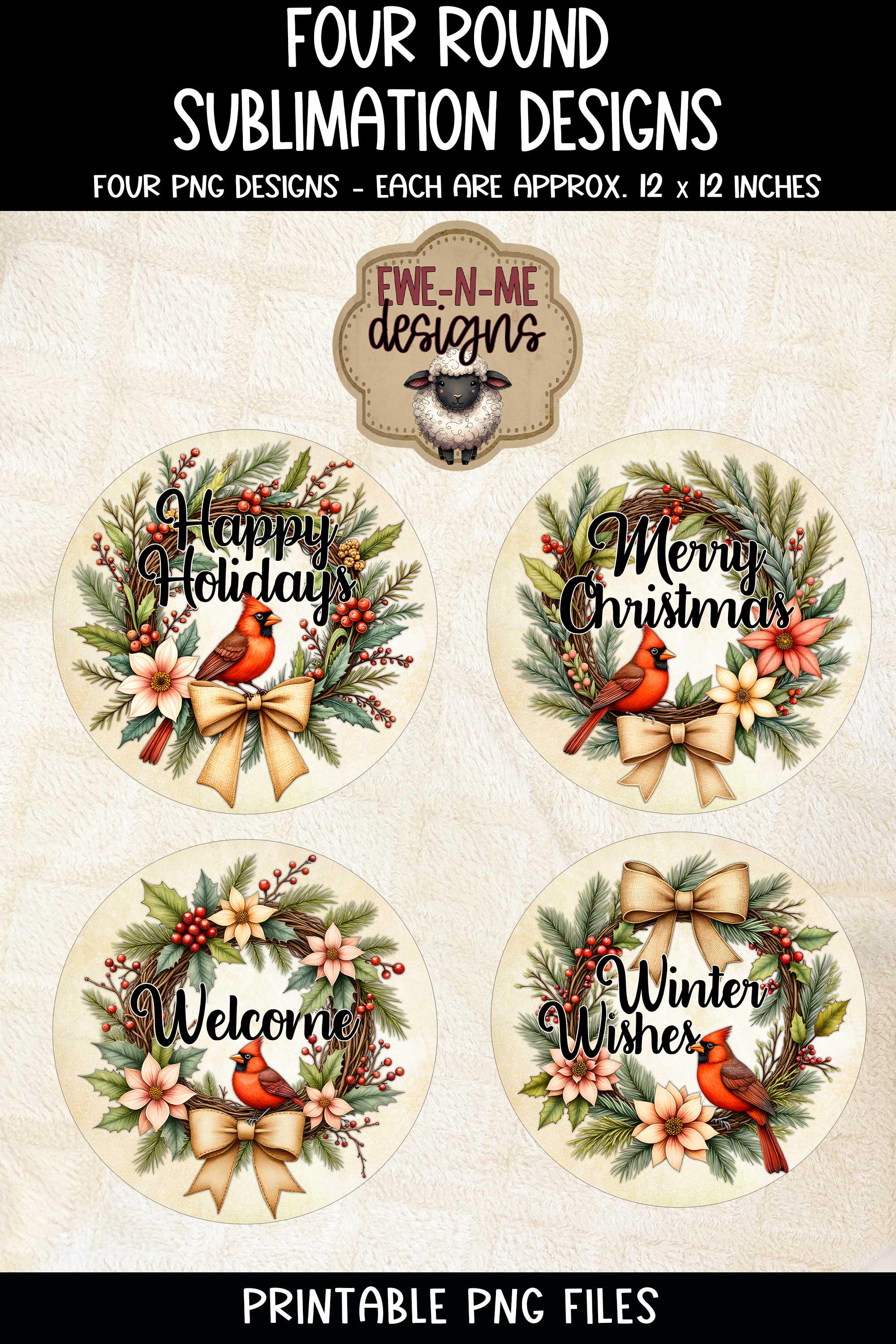 These designs makes for a great signs for the holidays, featuring gorgeous cardinals with a nice green wreath. This listing is for printable PNG files, this is not finished signs or ornaments. This is not a cutting file.