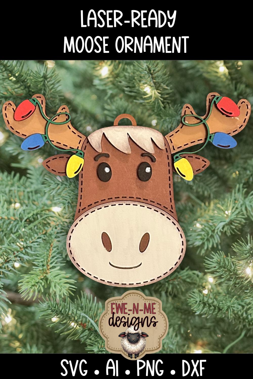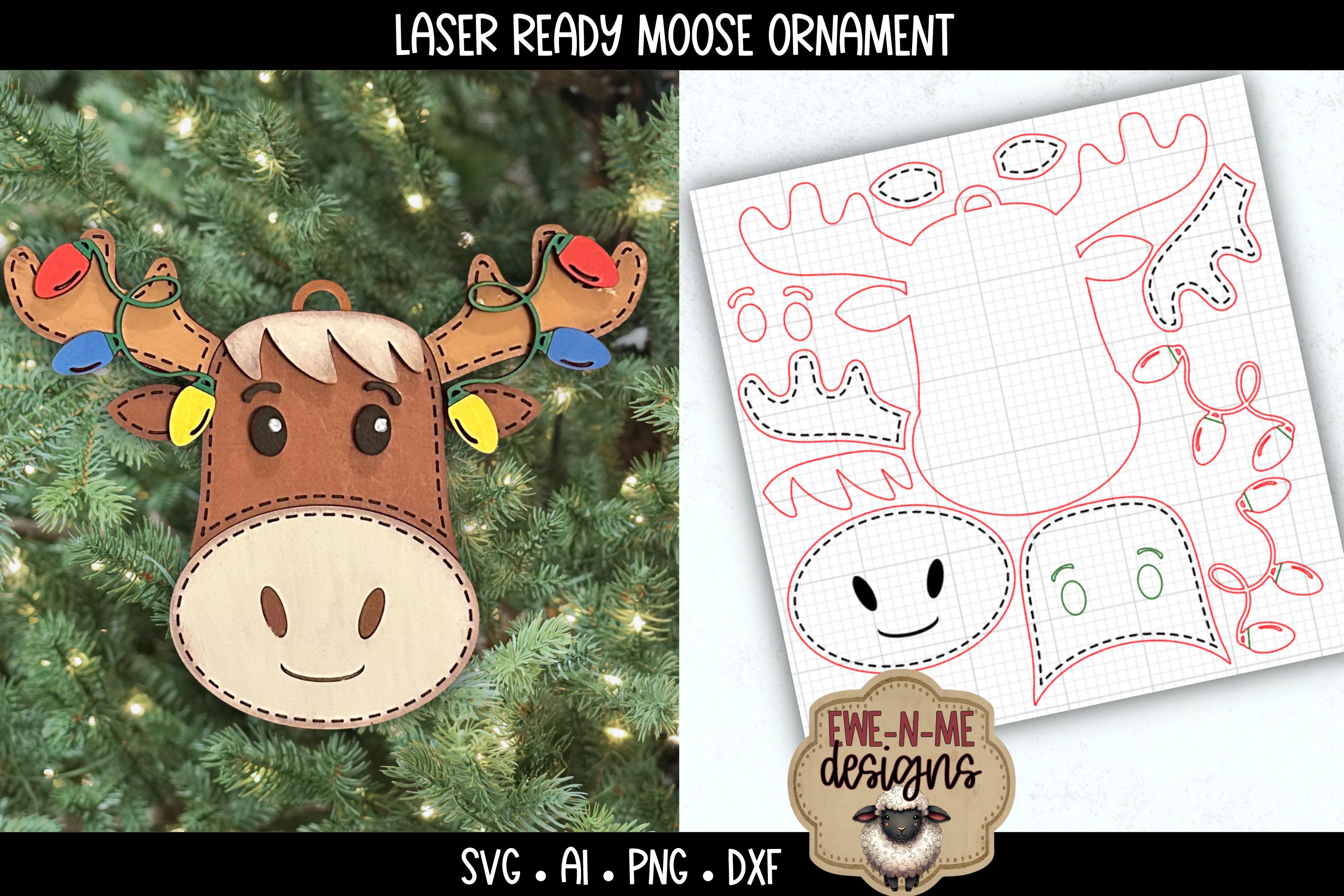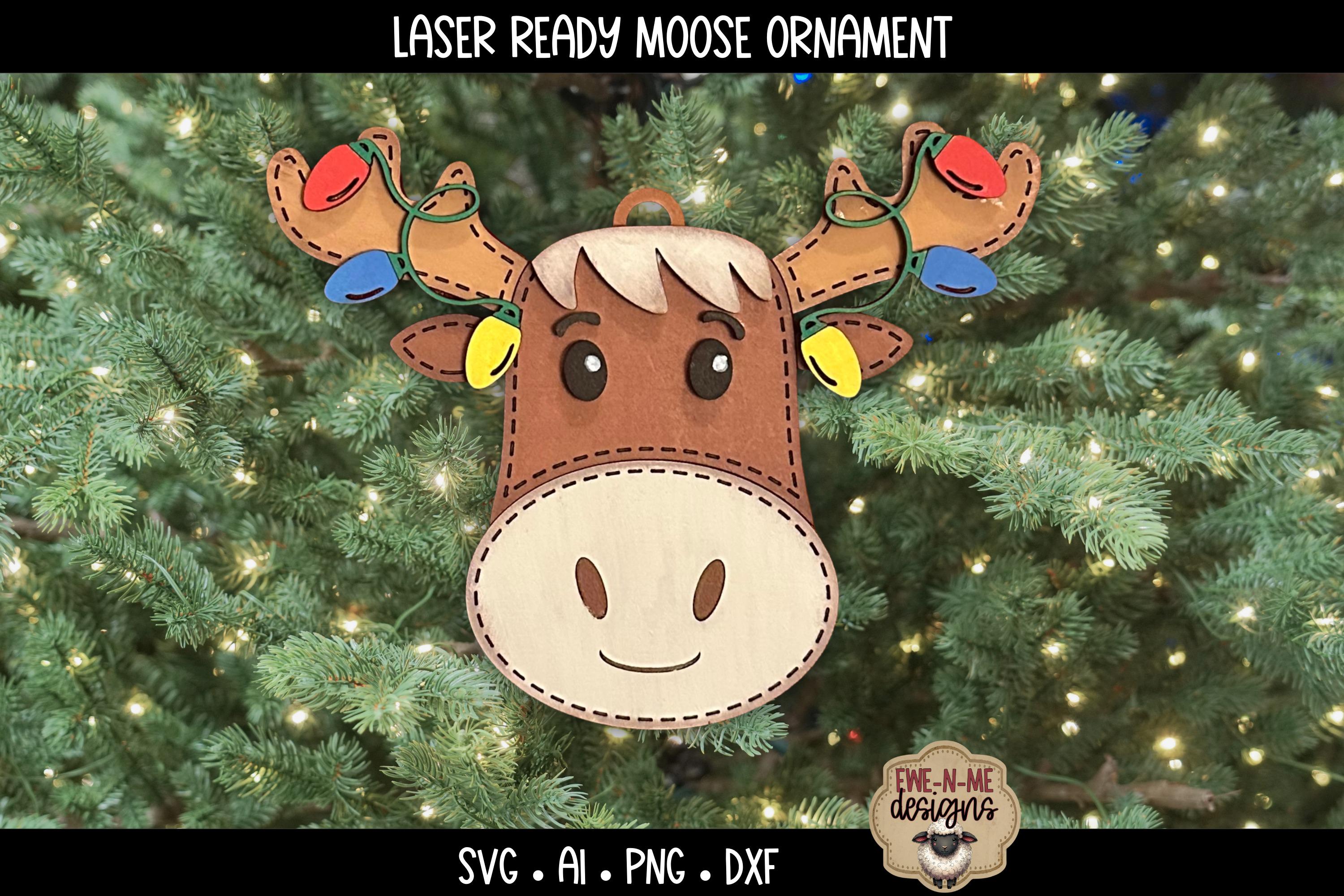 Moose with Christmas LIghts Ornament SVG – Laser Cut Christmas File for Glowforge or xTool