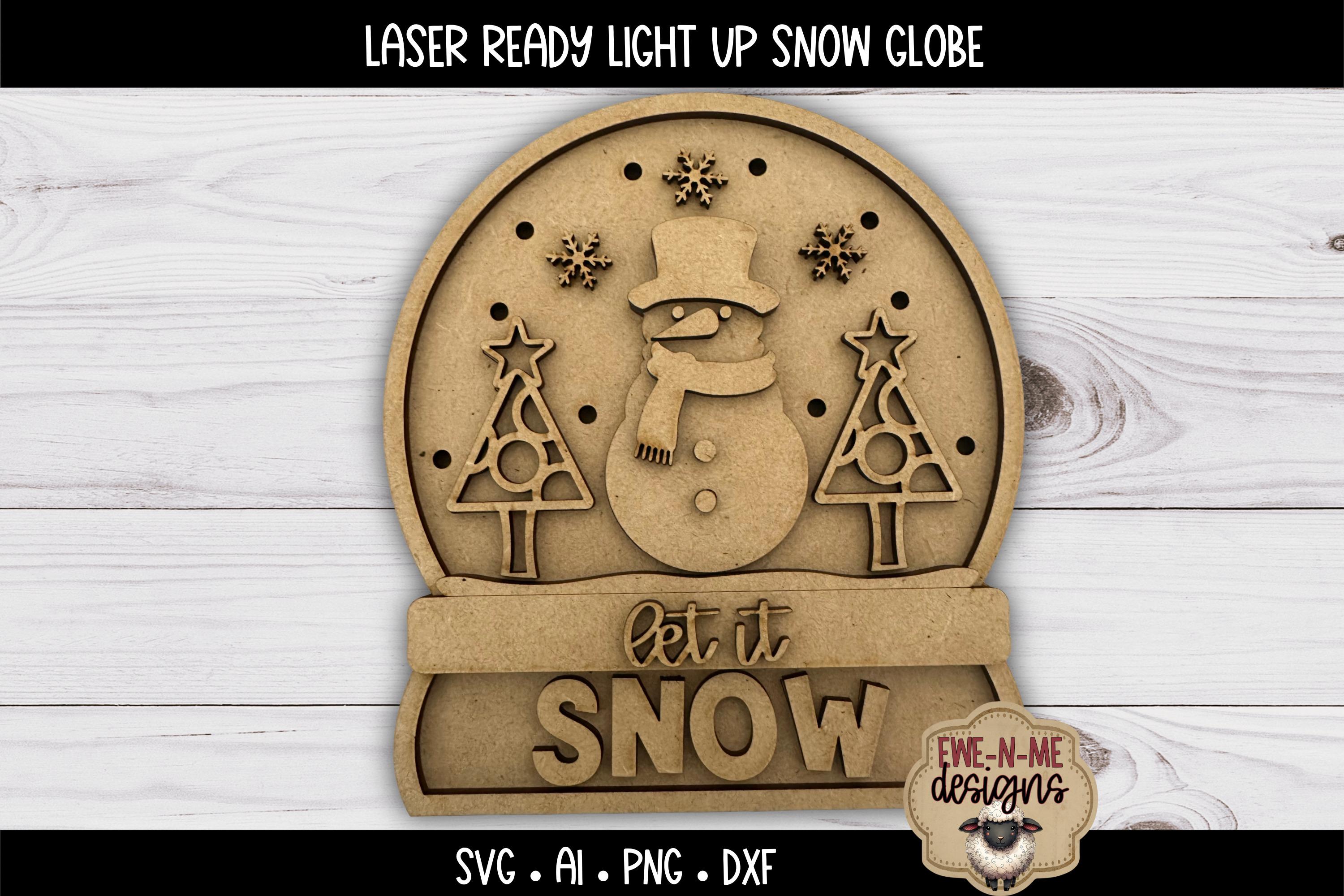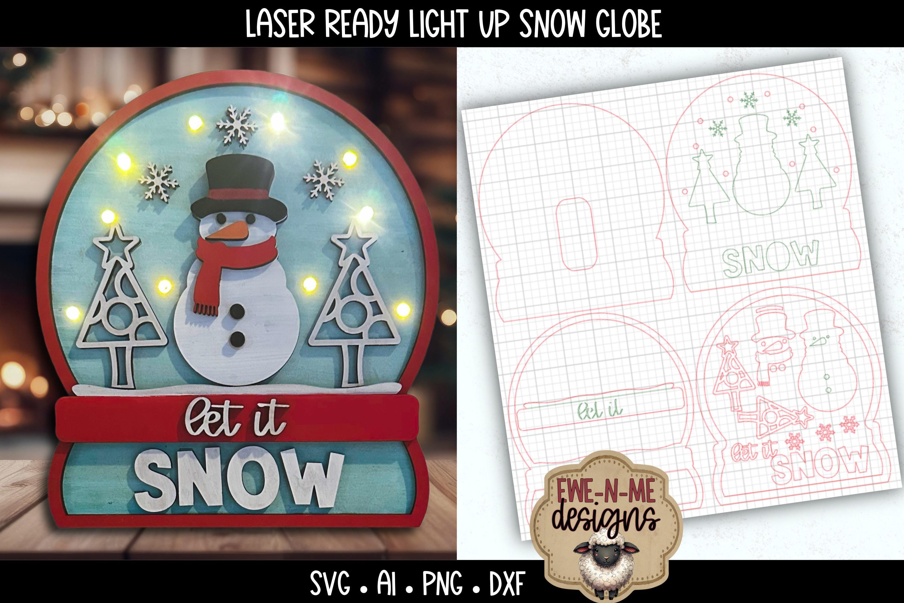 Bring some warm, glowing Christmas charm to your decor lineup! This laser-ready layered snow globe file features a sweet snowman scene designed specifically for laser cutters (Glowforge, xTool, Omtech, etc.). The finished piece measures approx. 6" wide x 6.5" tall and is built using four layers of 1/8" MDF (3mm) plus a spacer layer, making it super easy to tuck in LED fairy lights.