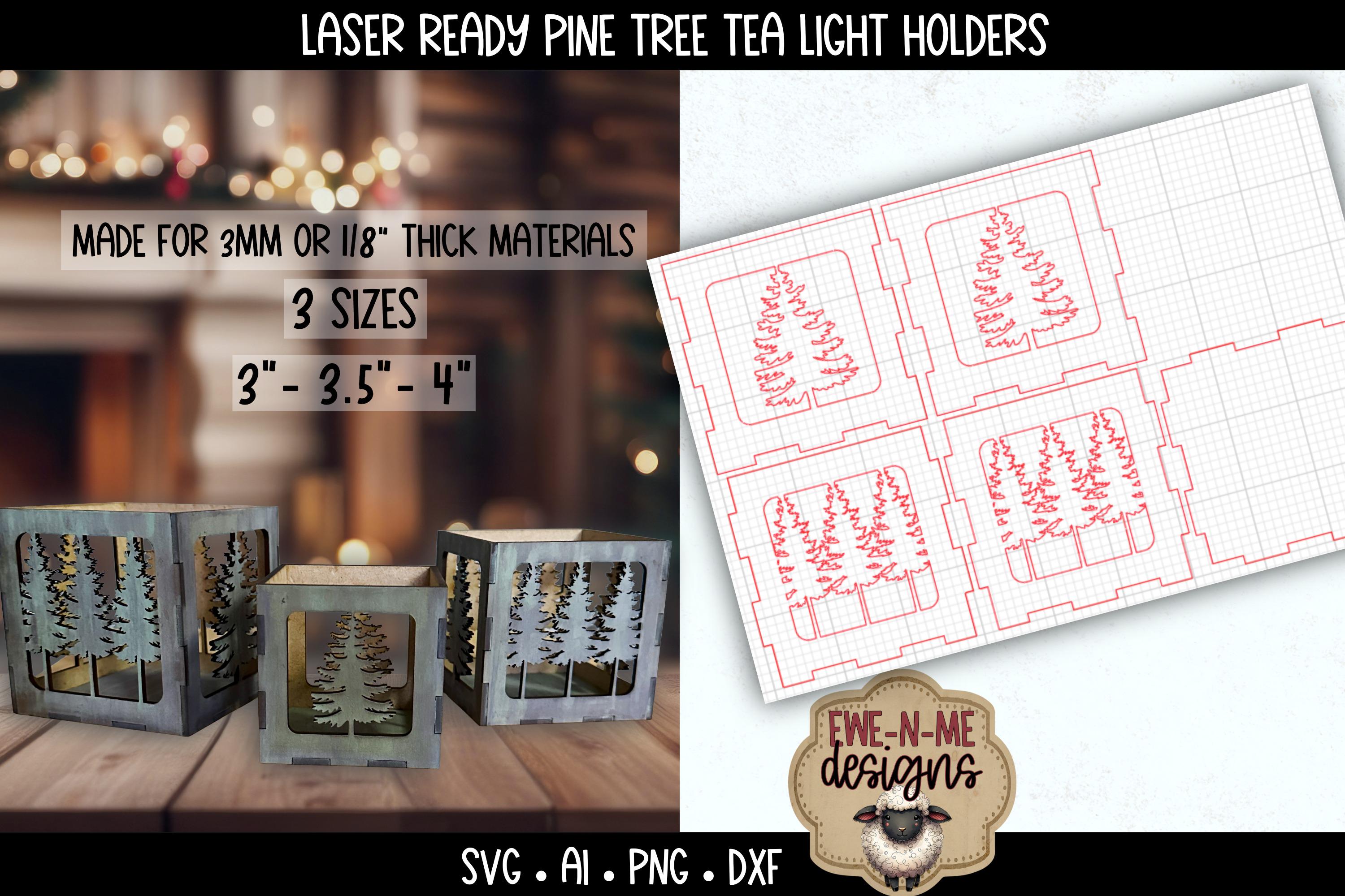 Create a cozy winter glow with this set of 3 laser-cut pine tree tealight holder boxes.