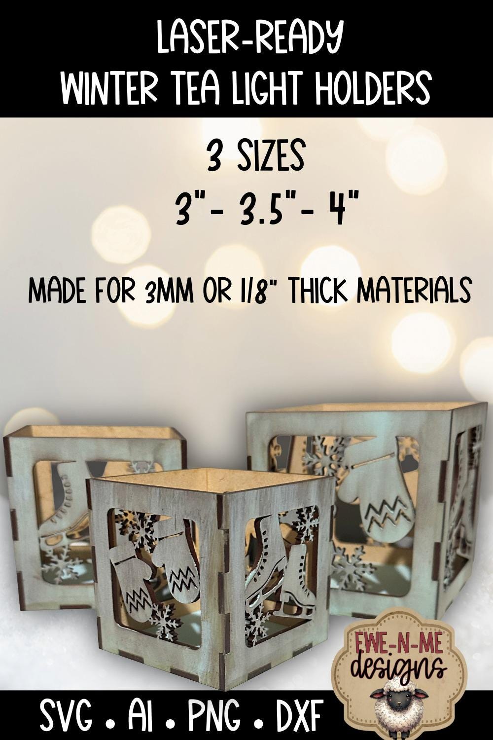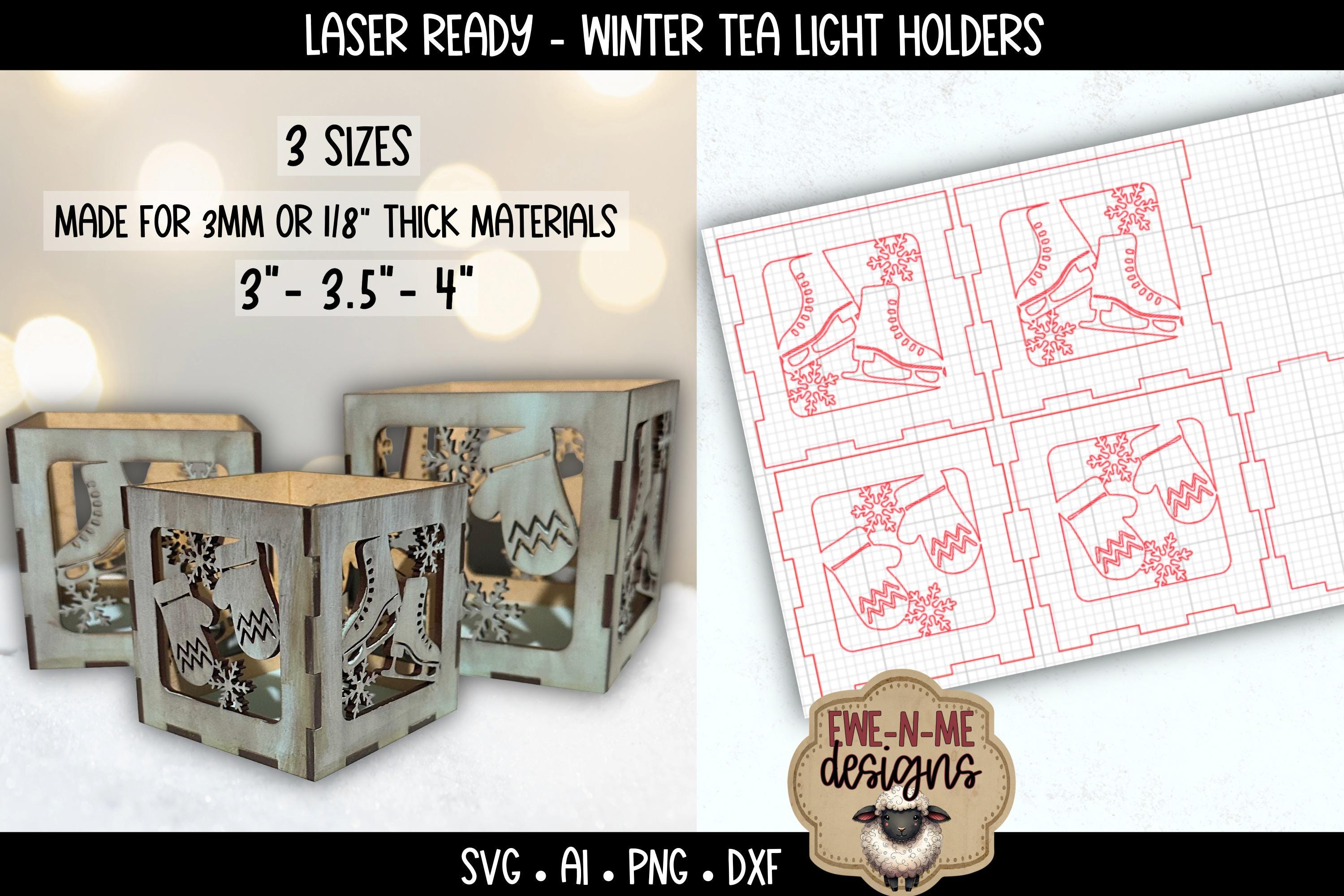 Create a cozy winter glow with this set of 3 laser-cut winter tealight holder boxes.