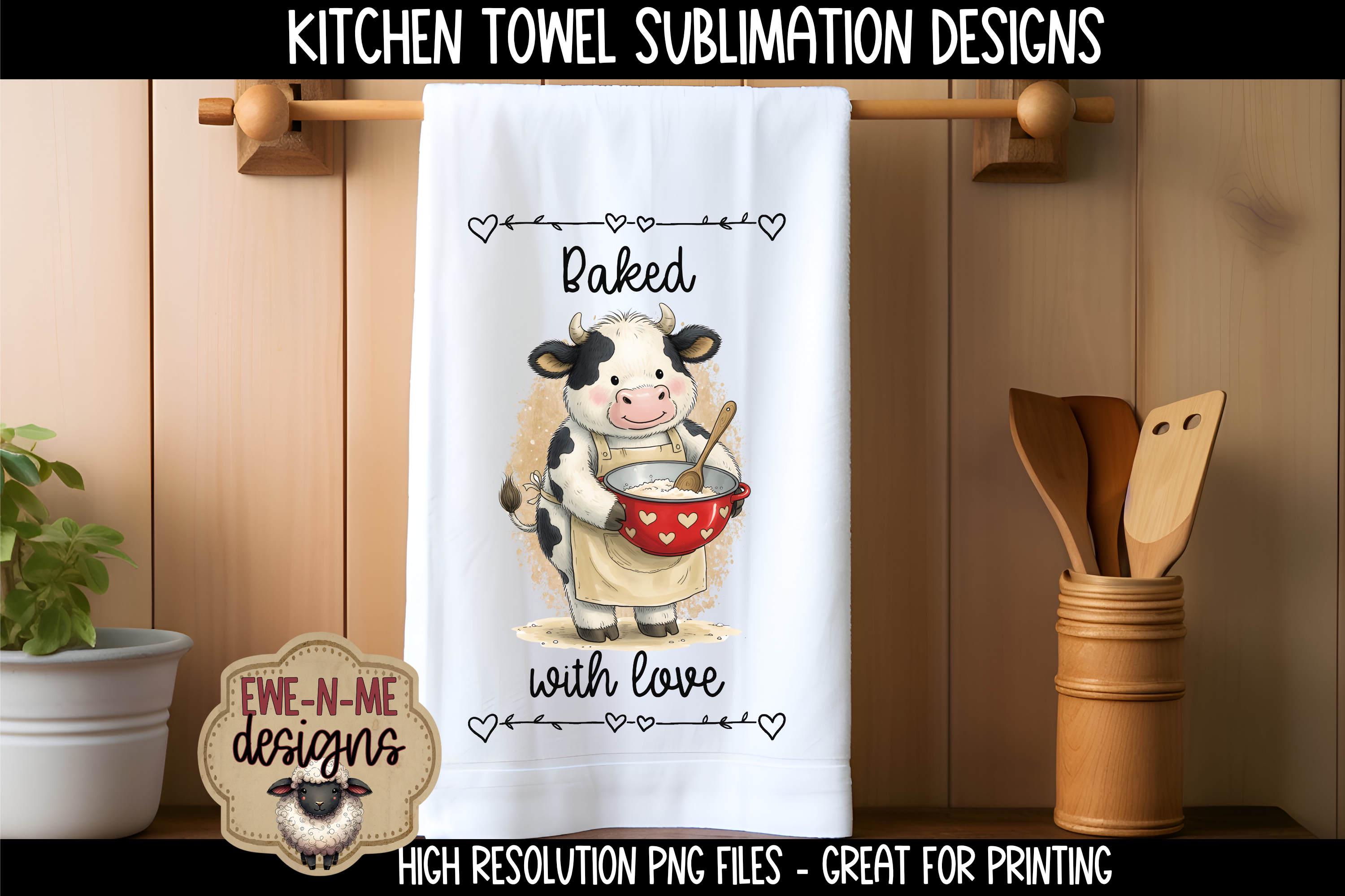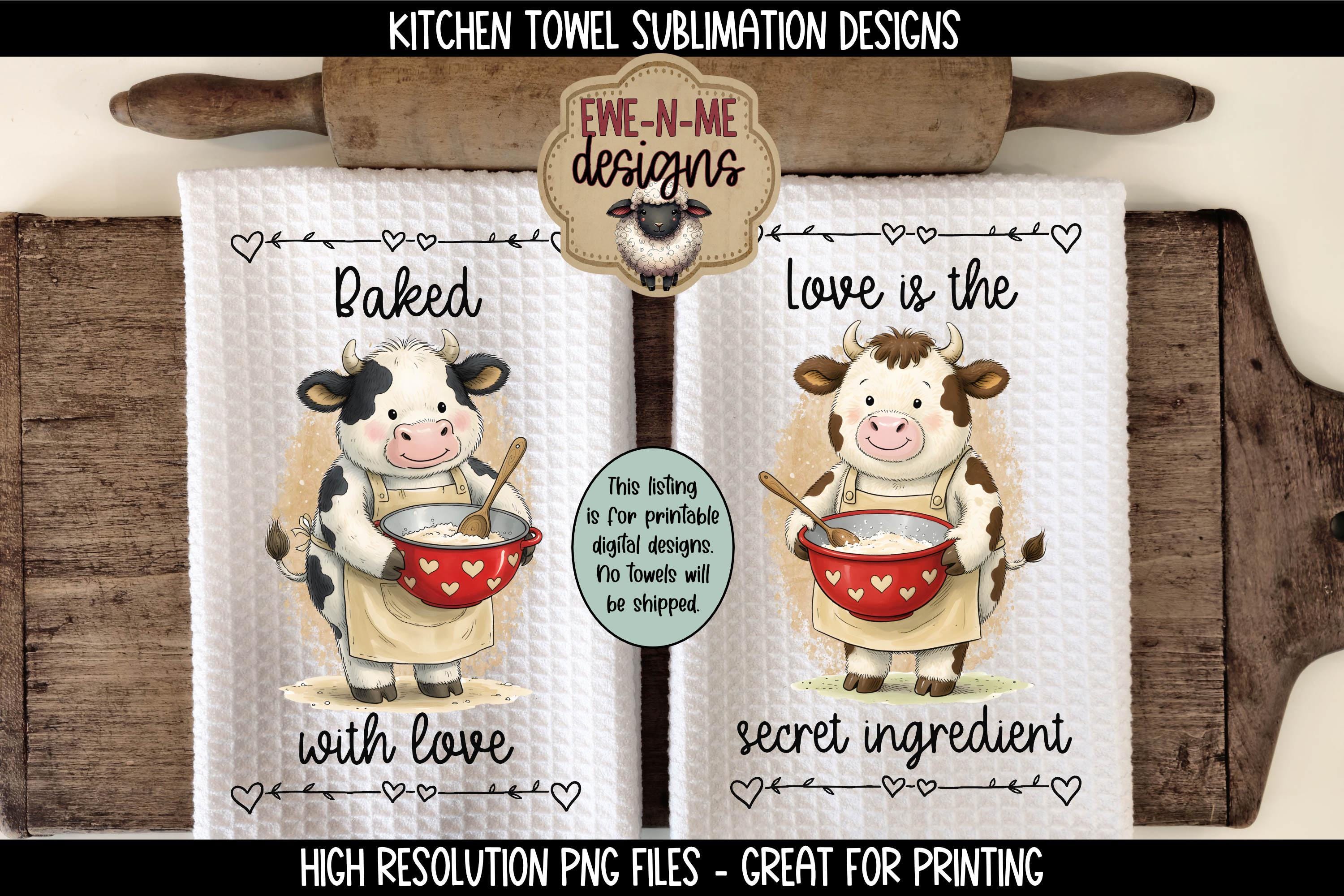 Add cozy farmhouse charm to your kitchen this Valentine’s Day with this sweet set of two digital kitchen towel designs, featuring adorable cows baking with love. Each design showcases a whimsical cow holding a heart-shaped mixing bowl, paired with classic Valentine phrases that feel warm, homemade, and timeless.