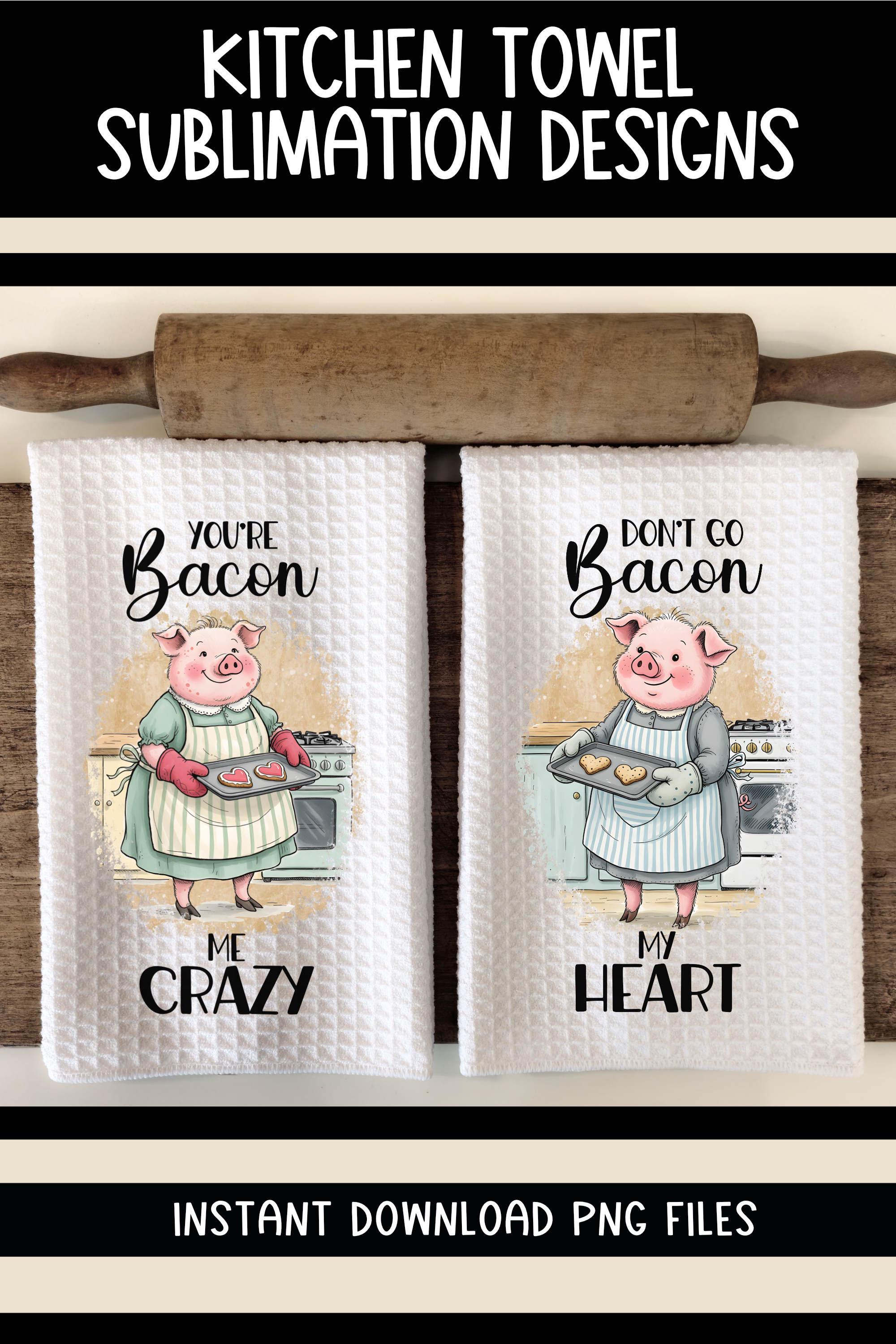 Add cozy farmhouse charm to your kitchen this Valentine’s Day with this sweet set of two digital kitchen towel designs, featuring adorable pigs baking with heart shaped cookies. Each design showcases a whimsical pig holding a cookie sheet with cookies, paired with cute Valentine phrases that feel warm, homemade, and timeless.