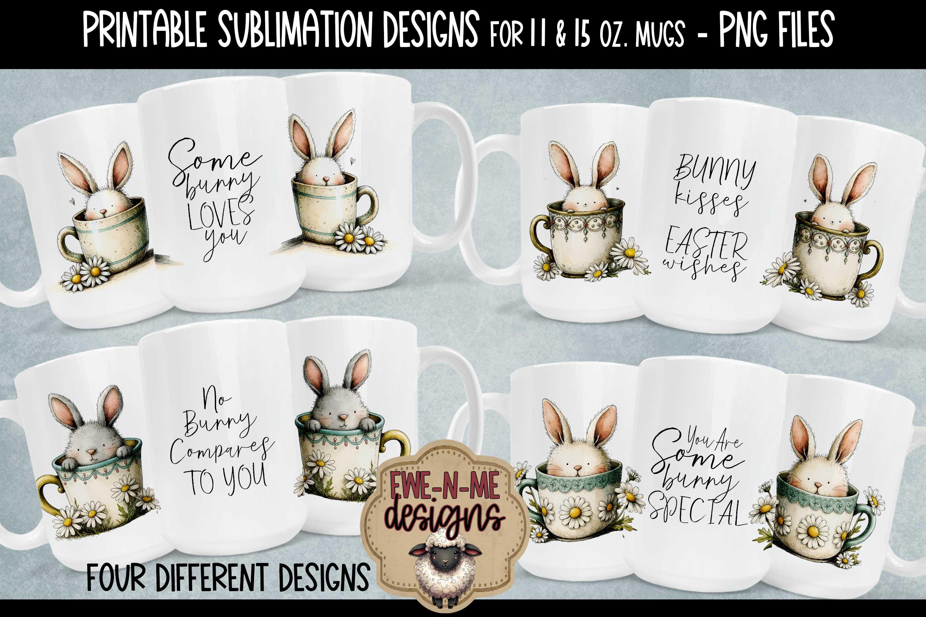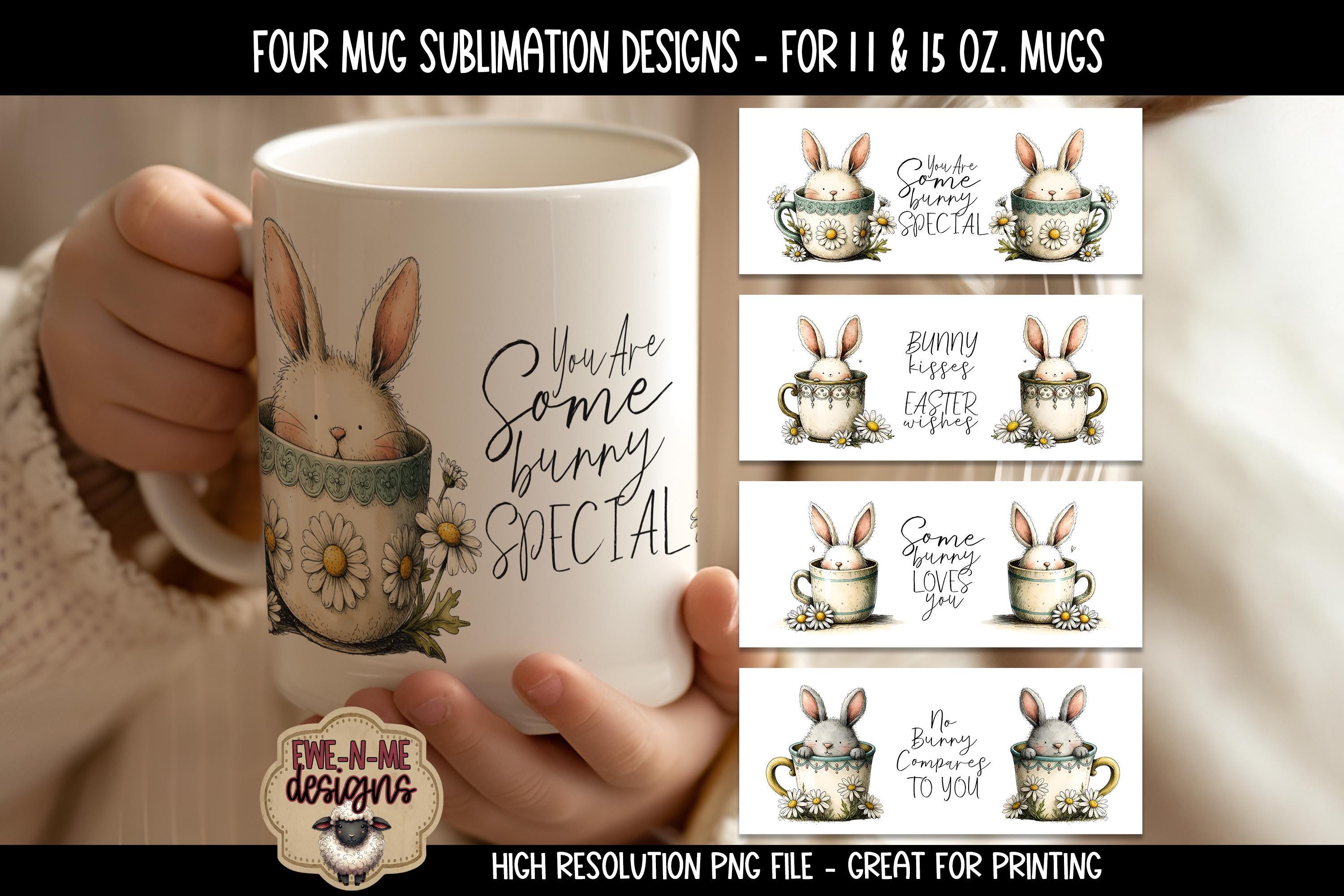 4 designs in PNG format included for 11 and 15 oz mugs. These designs have a soft edge for easy sublimation... you won't need a perfect press at the top and bottom for these.