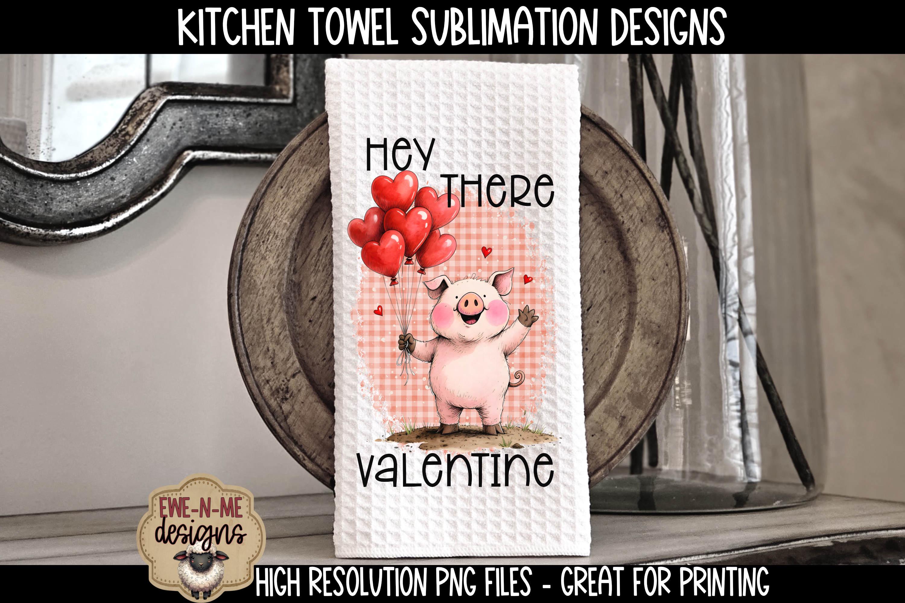 Add whimsical charm to your kitchen this Valentine’s Day with this sweet set of two digital kitchen towel designs, featuring adorable pigs with a bunch of heart shaped balloons. Each design showcases a whimsical pig holding a balloon bouquet.