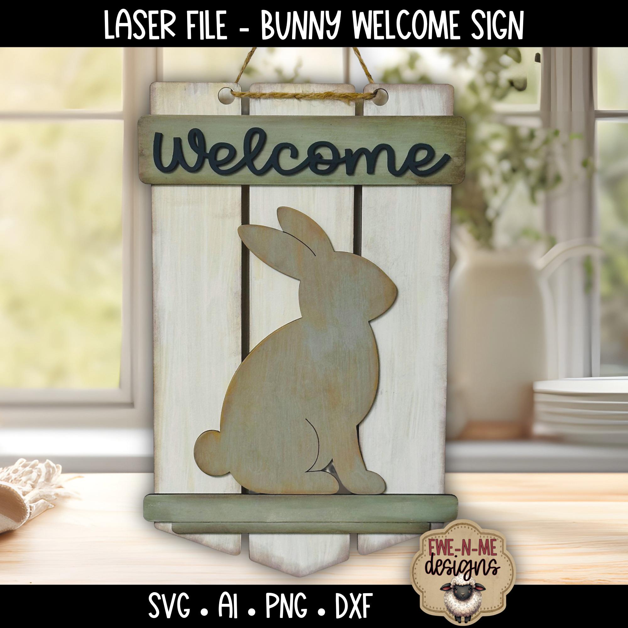 Create a charming spring door hanger with this Bunny Welcome laser file. Layered design, beginner-friendly, perfect for seasonal wood signs.