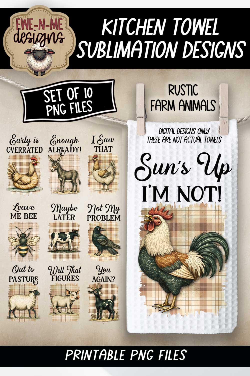 Add a touch of country humor to your kitchen creations with this collection of primitive-style farm animal towel designs. Each piece features rustic textures, warm neutral plaid backgrounds, and playful sayings perfect for farmhouse, country, and primitive decor lovers.