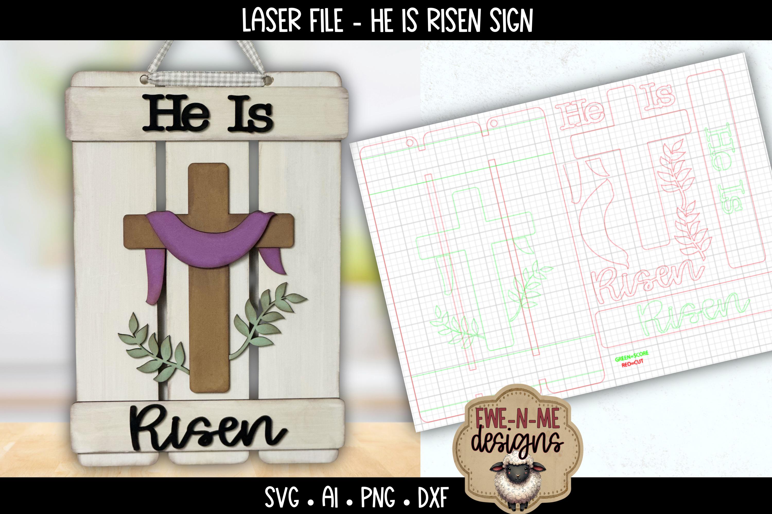 Celebrate the true meaning of Easter with this layered He Is Risen cross sign, designed in a warm rustic pallet wood style. Featuring a dimensional cross, draped resurrection cloth, and simple greenery accents, this laser-ready file creates a meaningful piece that feels both heartfelt and approachable.