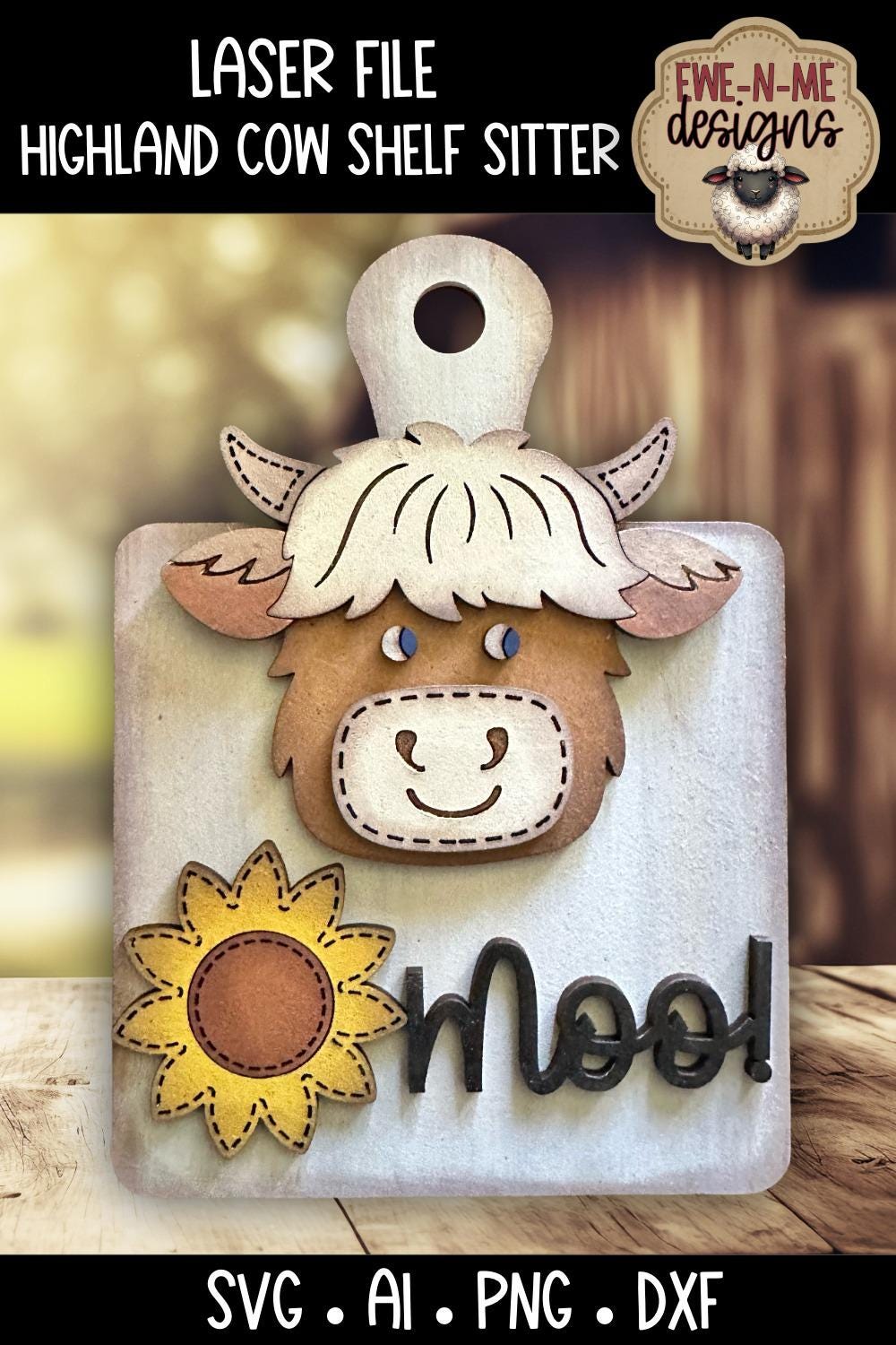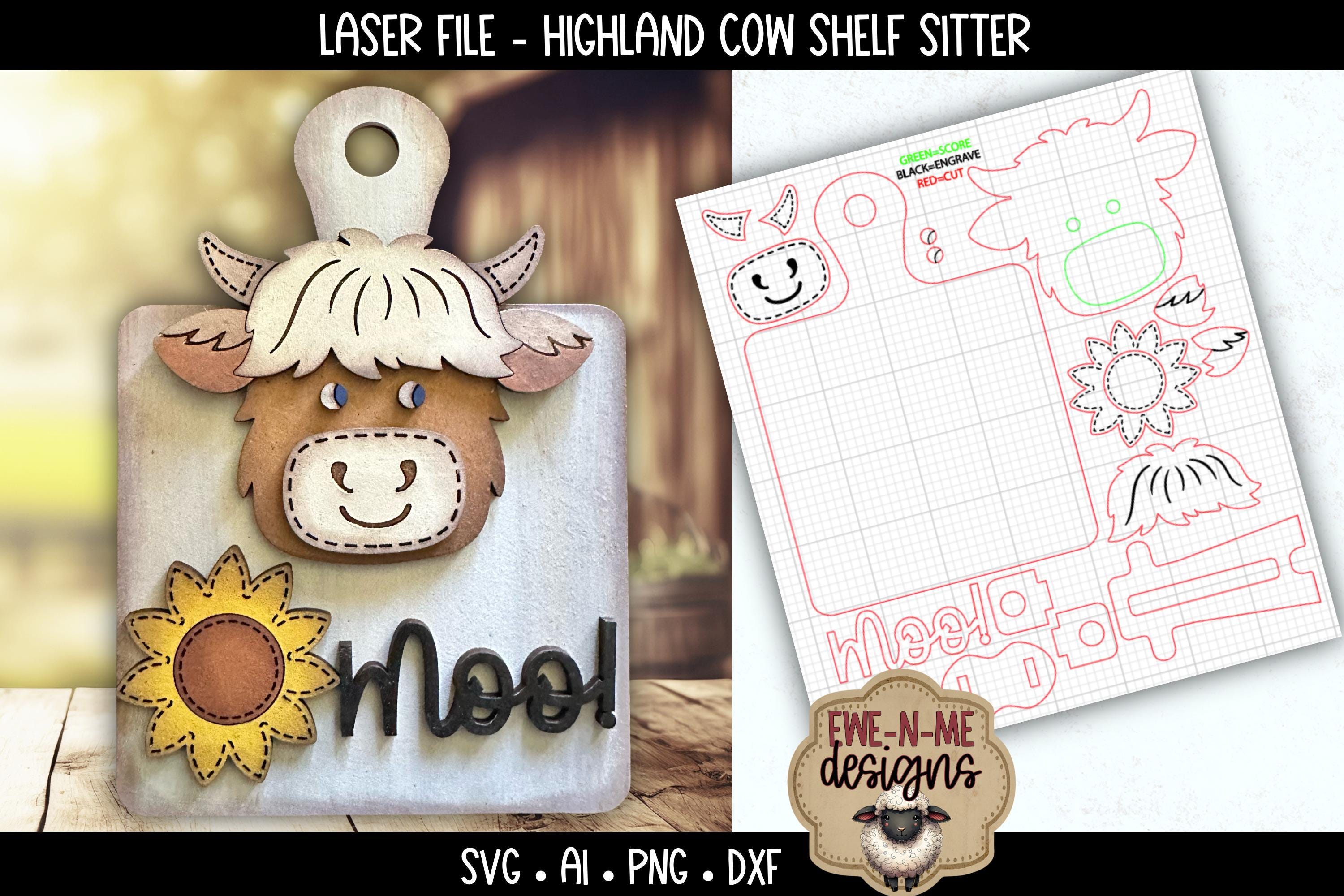 Bring a little rustic charm and personality to your next laser project with this adorable Highland cow sign featuring a cheerful sunflower and playful lettering. This layered design is easy to paint, simple to assemble, and perfect for makers who love creating warm, character-filled pieces for shelves, tiered trays, and small display spaces.