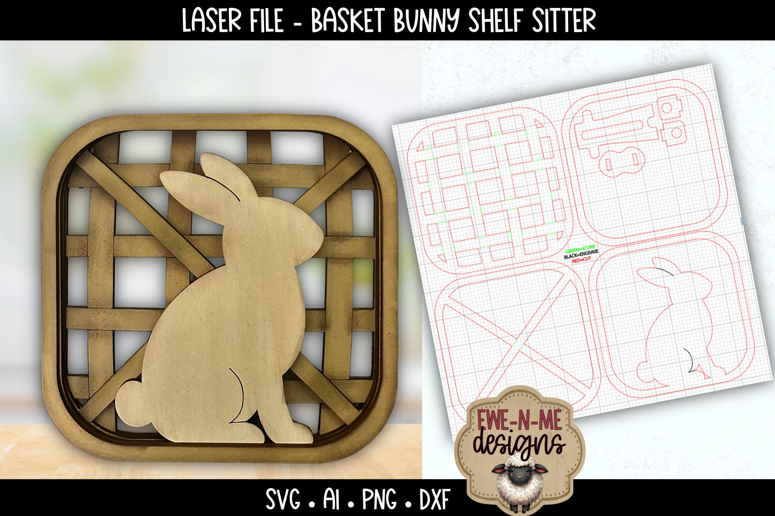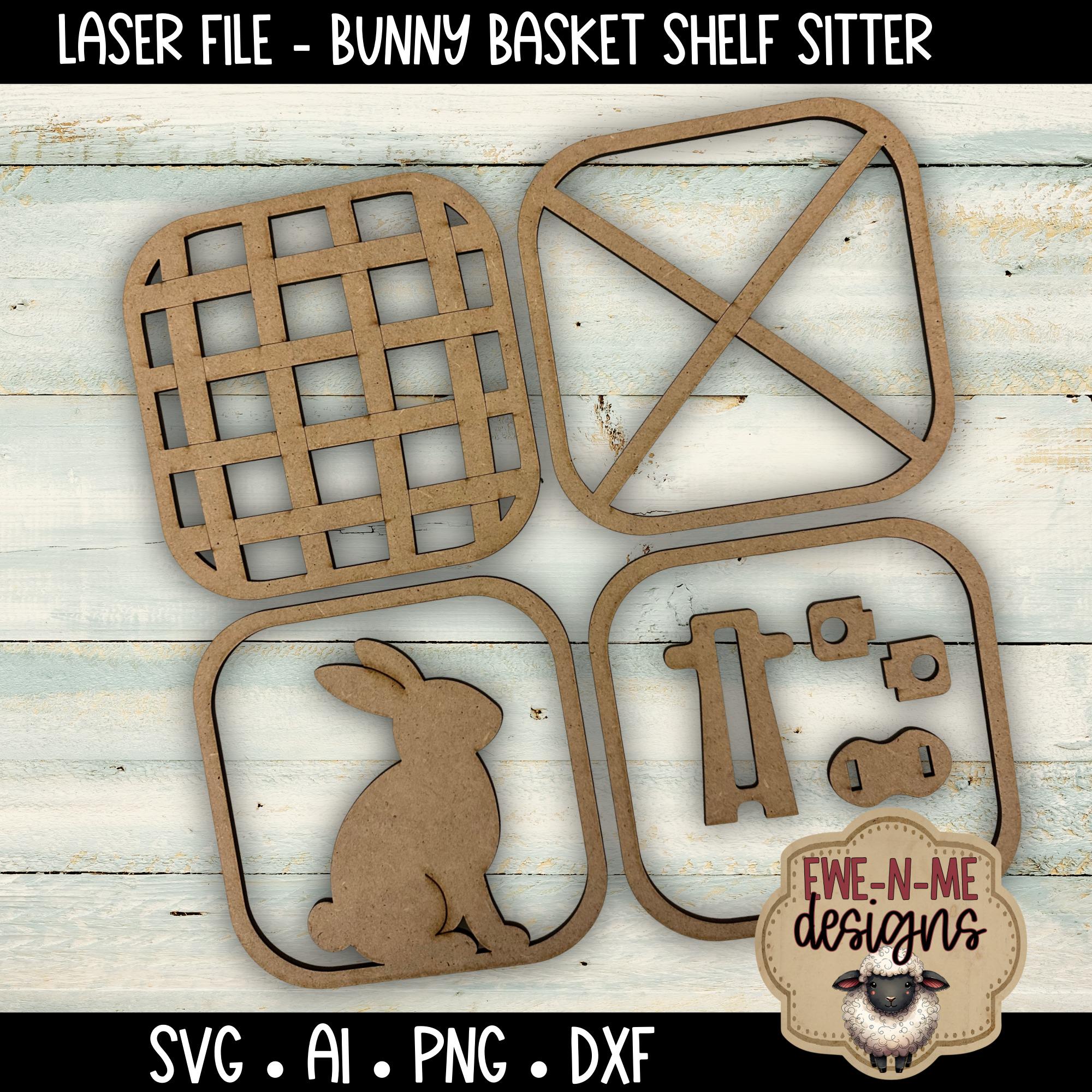 Create an adorable spring shelf sitter with this layered bunny tobacco basket design. This laser-ready file features a woven basket background, crisscross support layer, and a sweet bunny silhouette that sits perfectly inside the rounded basket frame. The finished piece makes a charming addition to tiered trays, shelves, mantels, and seasonal displays.