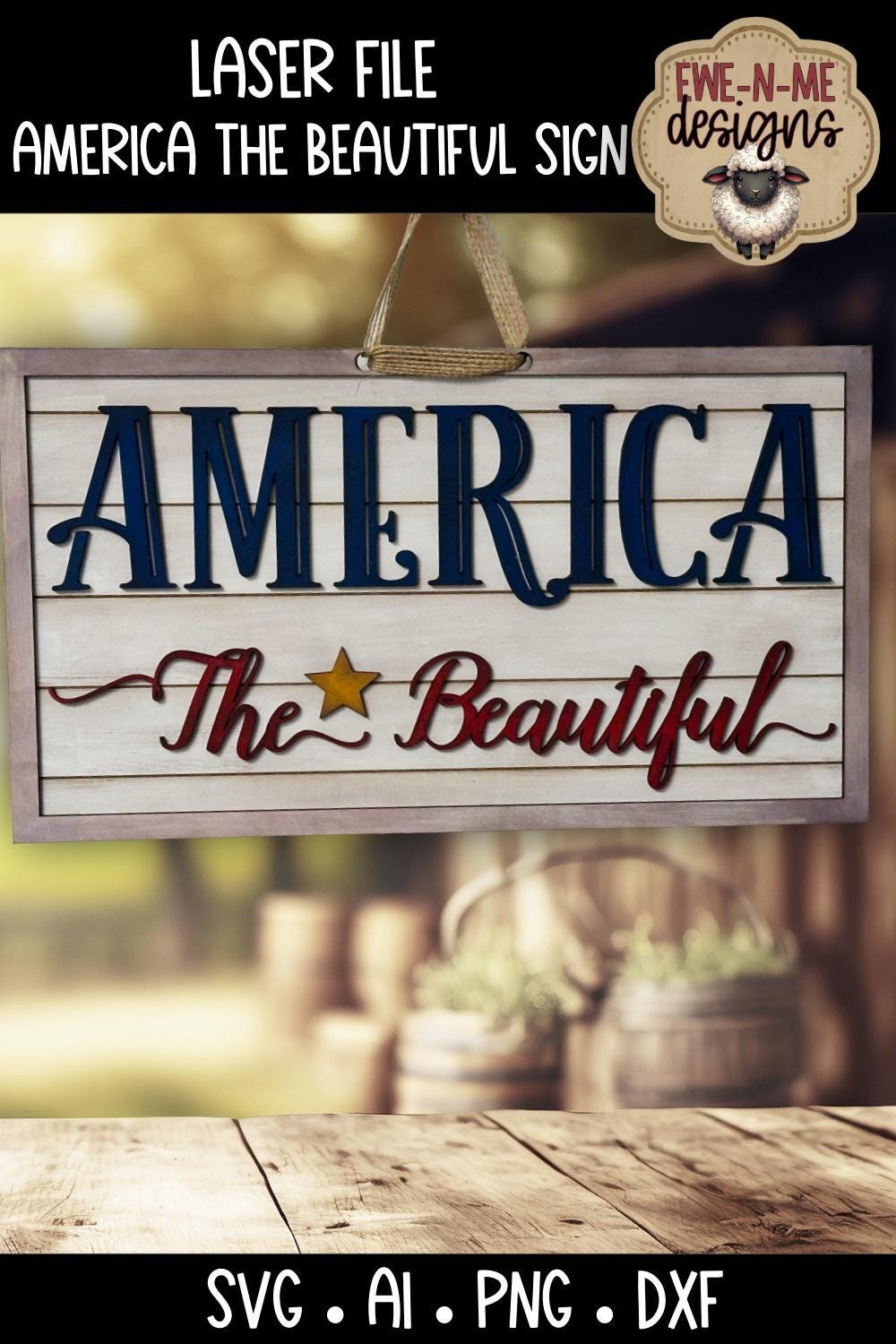 Create a classic patriotic piece with this America The Beautiful layered sign laser file. Designed with bold lettering and a rustic plank-style backer, this project is perfect for summer decorating, porch displays, or Fourth of July decor.