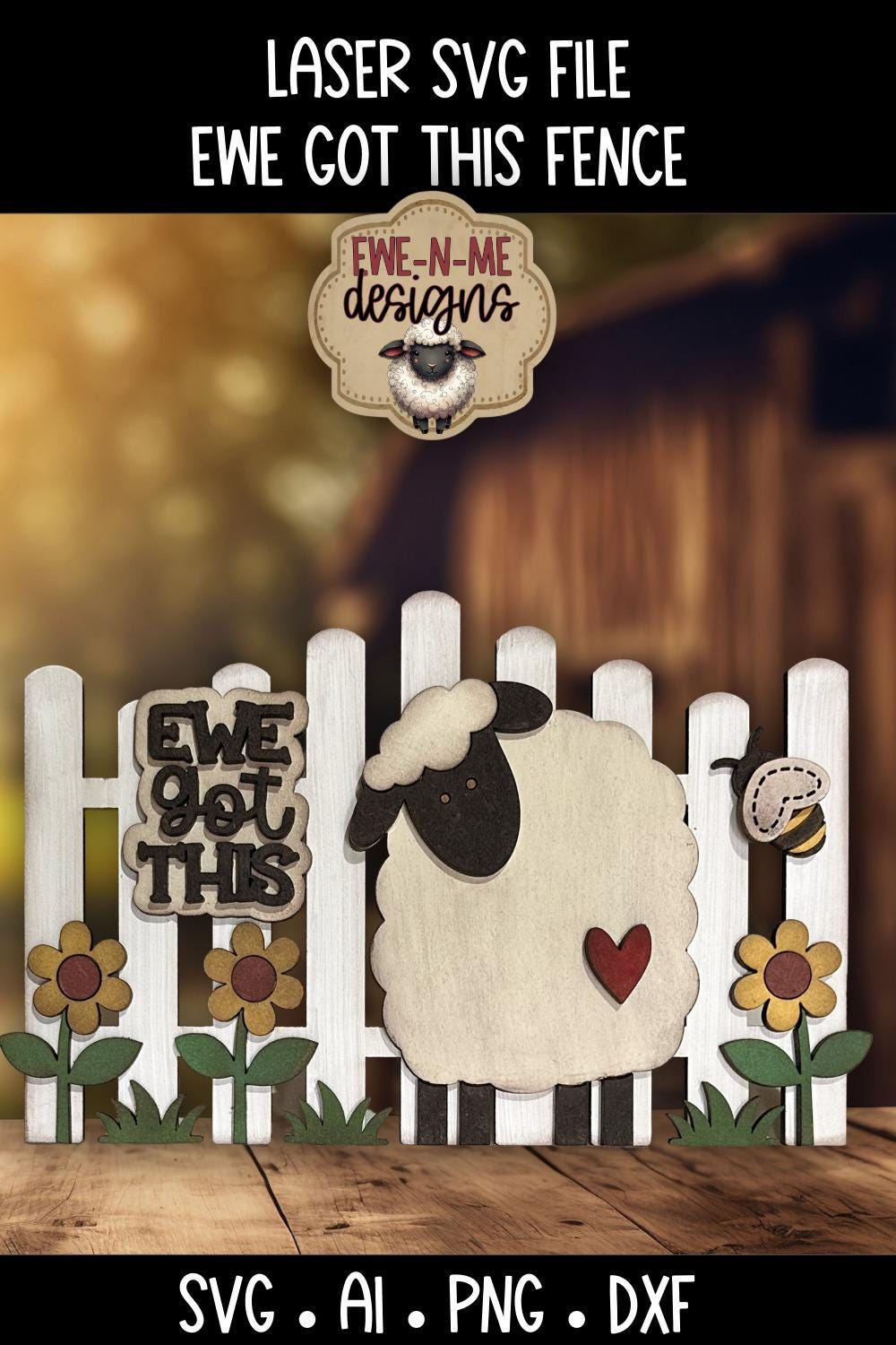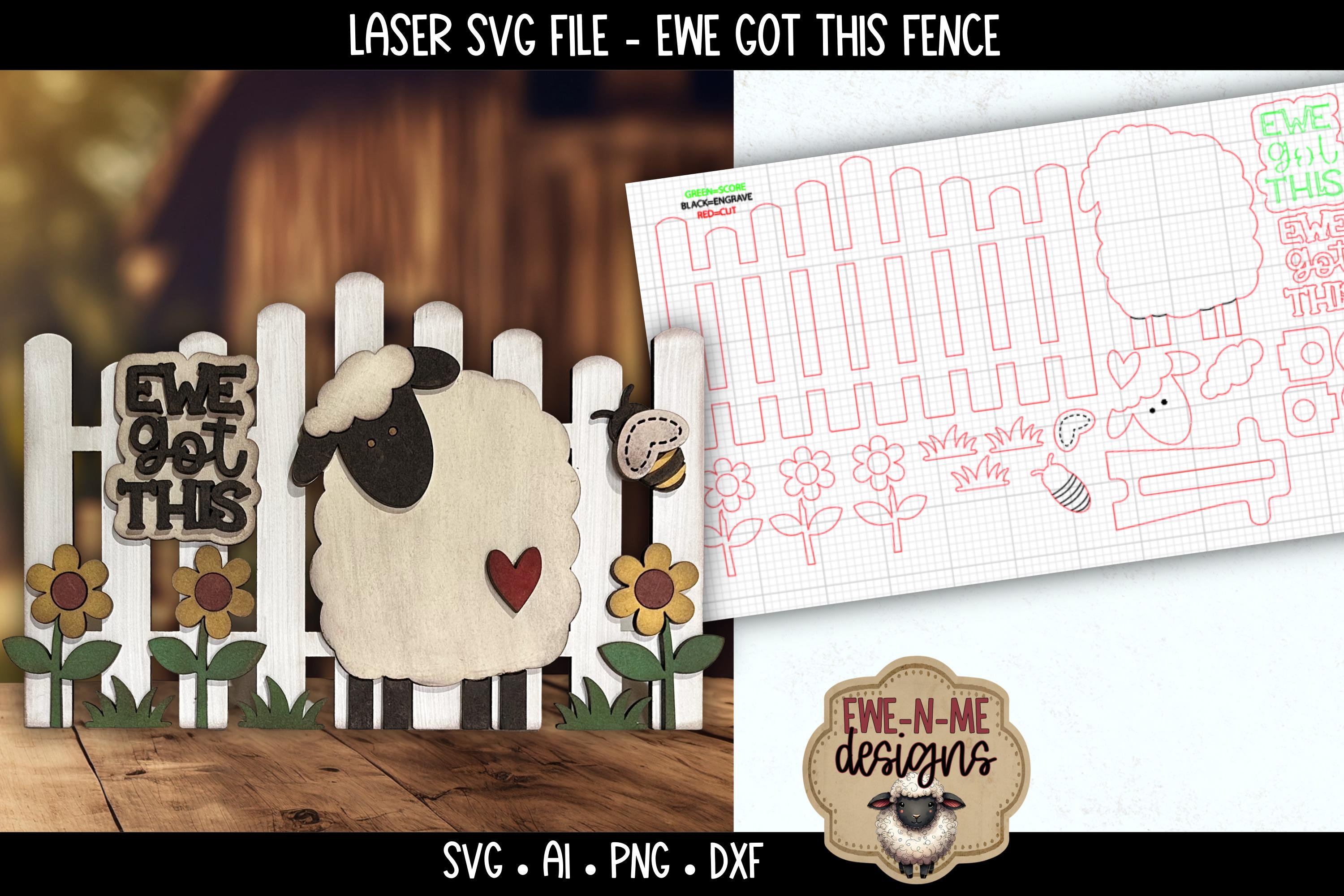 Add a little encouragement to your fence collection with this “Ewe Got This” sheep design! This rustic laser cut file features a primitive-style sheep, layered flowers, and a coordinating fence layout - designed to fit seamlessly with your existing fence collection pieces.