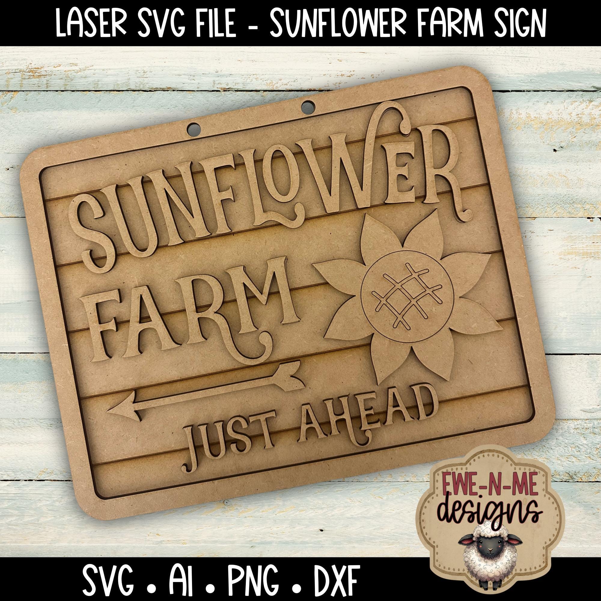 Bring a warm, rustic touch to your next laser project with this Sunflower Farm sign design. This layered wood sign features bold lettering, a classic sunflower accent, and a clean directional layout that’s easy to paint and assemble.