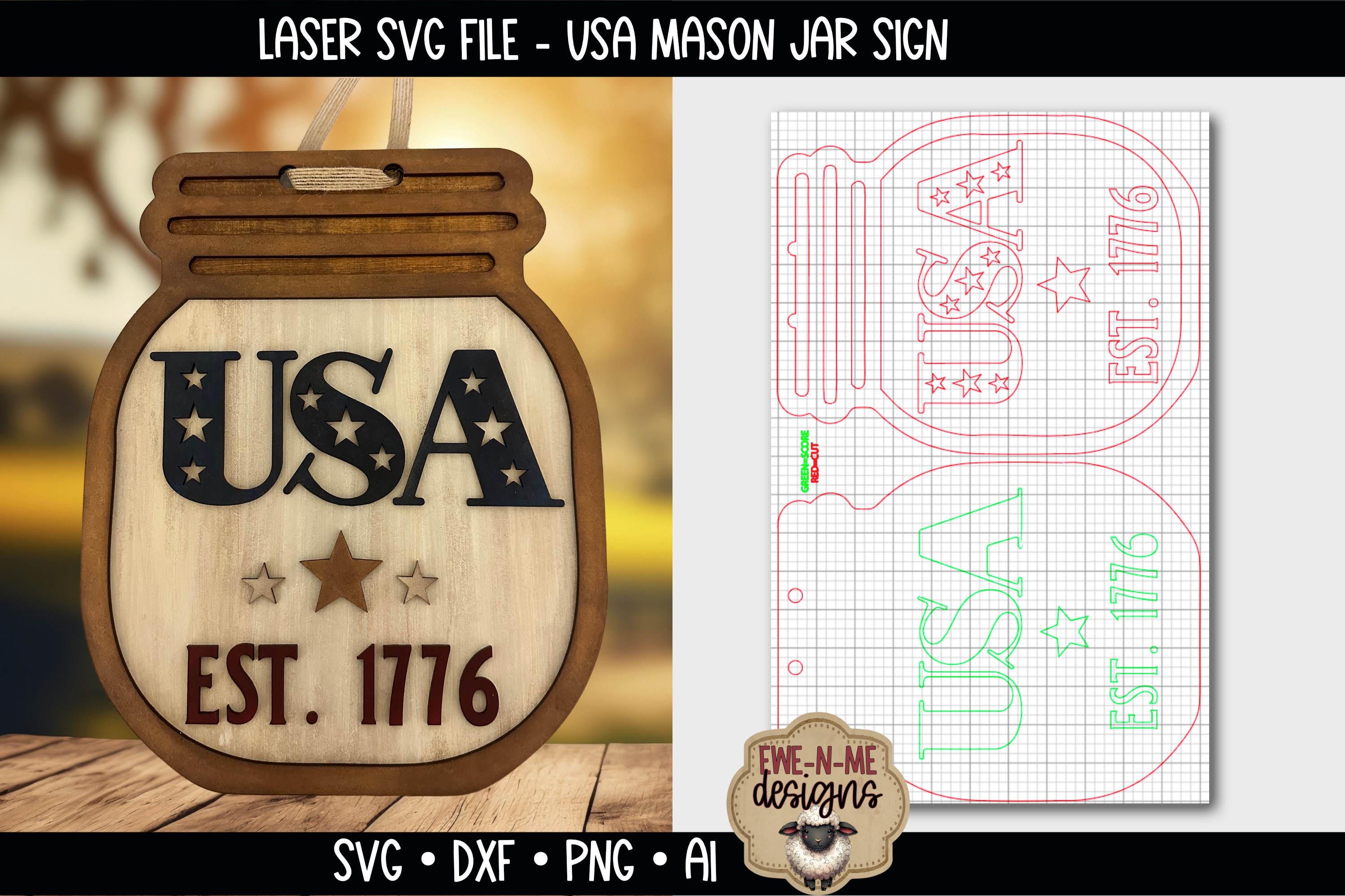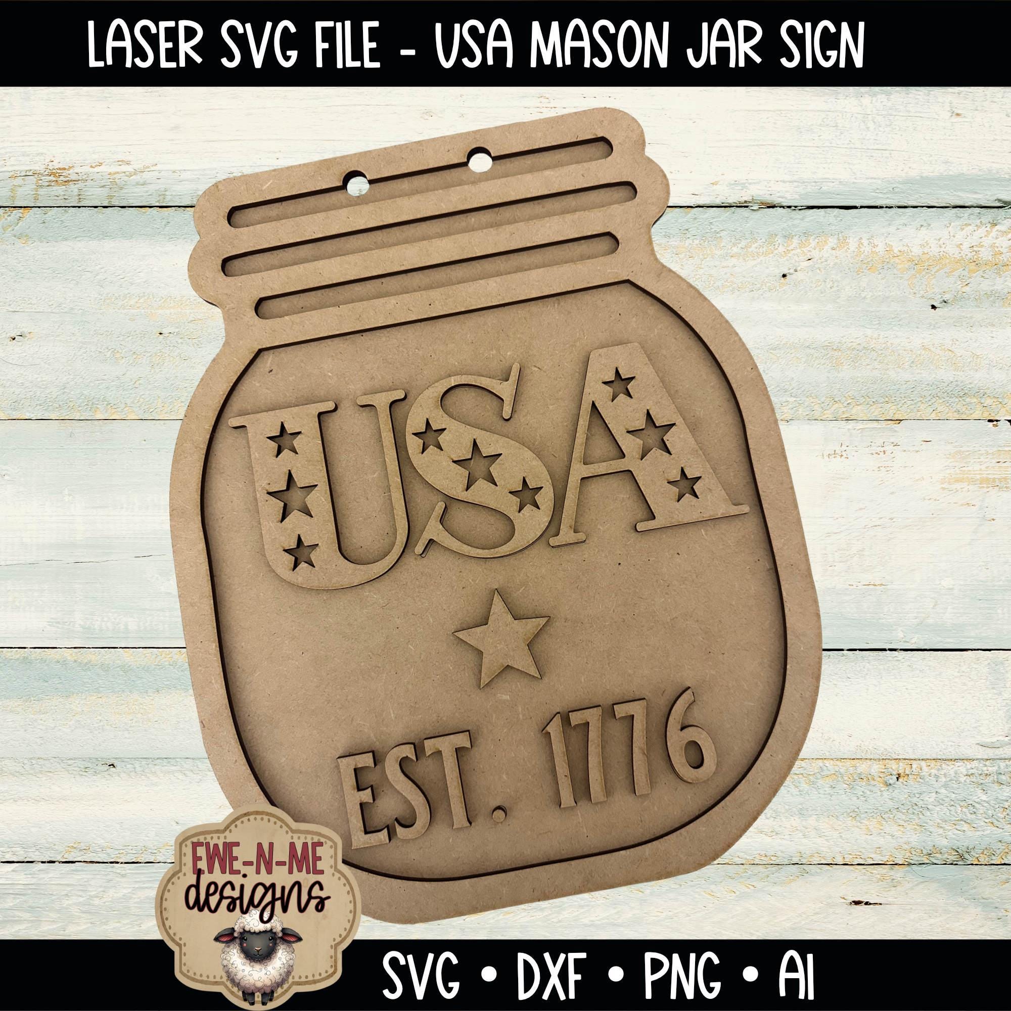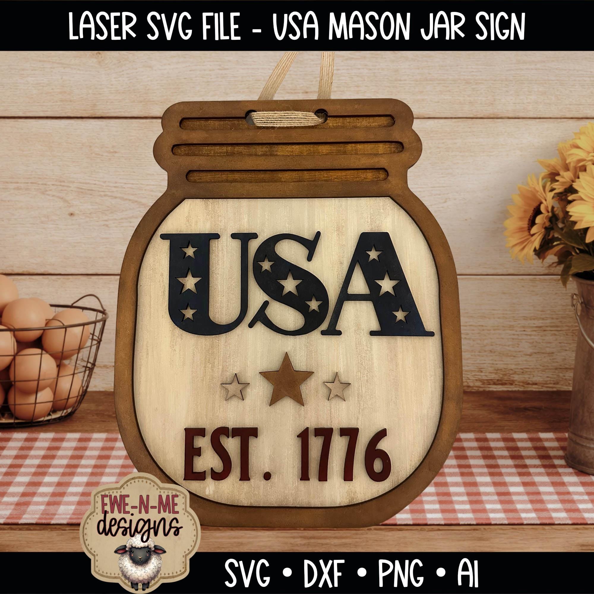 This layered laser file features bold “USA” lettering with star cutouts, a classic mason jar shape, and “Est. 1776” detail for that vintage-inspired look customers love. It’s designed to be easy to cut, paint, and assemble - no overthinking required.