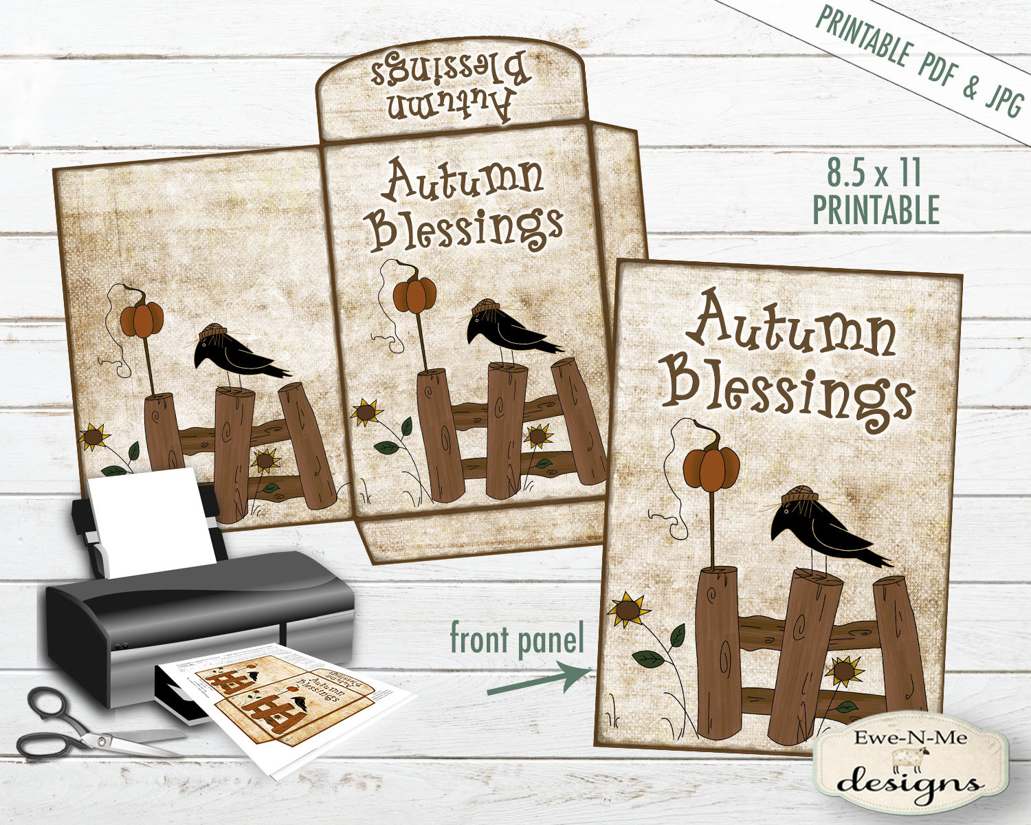 You can use these printed packets for all sorts of things. You could put potpourri or fixin's in them, note cards, gifts cards, candy, treats, seed packs, cocoa packets, cider packets and more. The possibilities are endless!!