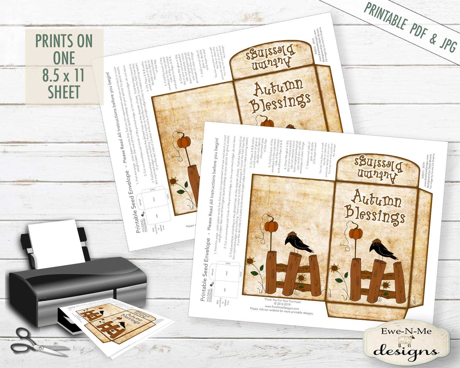 Each file contains an 8.5”x11” page one printable envelope which fits standard size cocoa mix, hot cider and some seed packs.