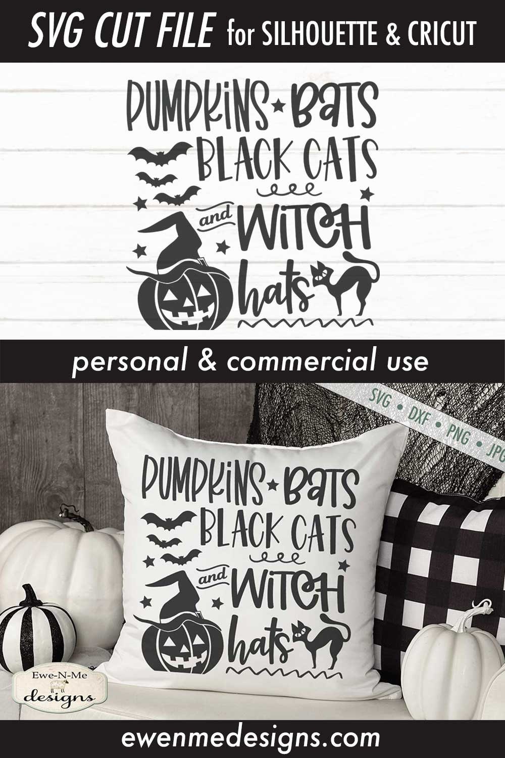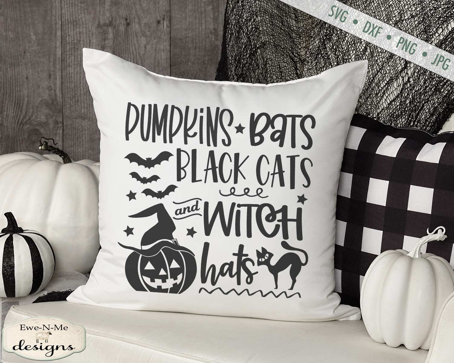Pumpkins Bats Black Cats and Witch Hats - Halloween SVG