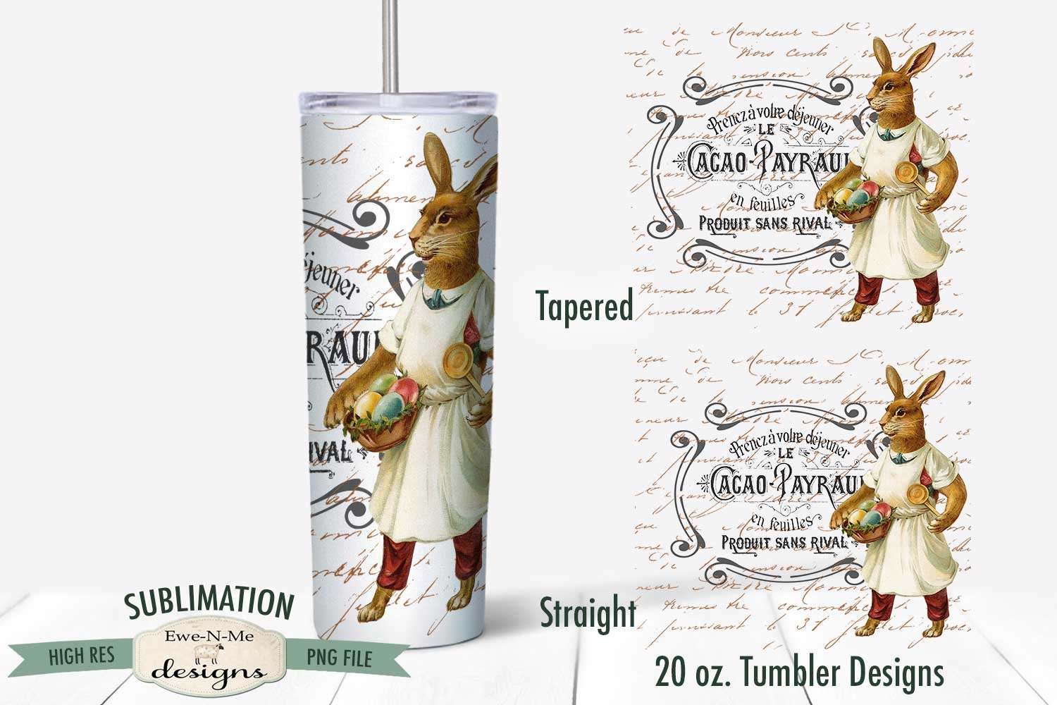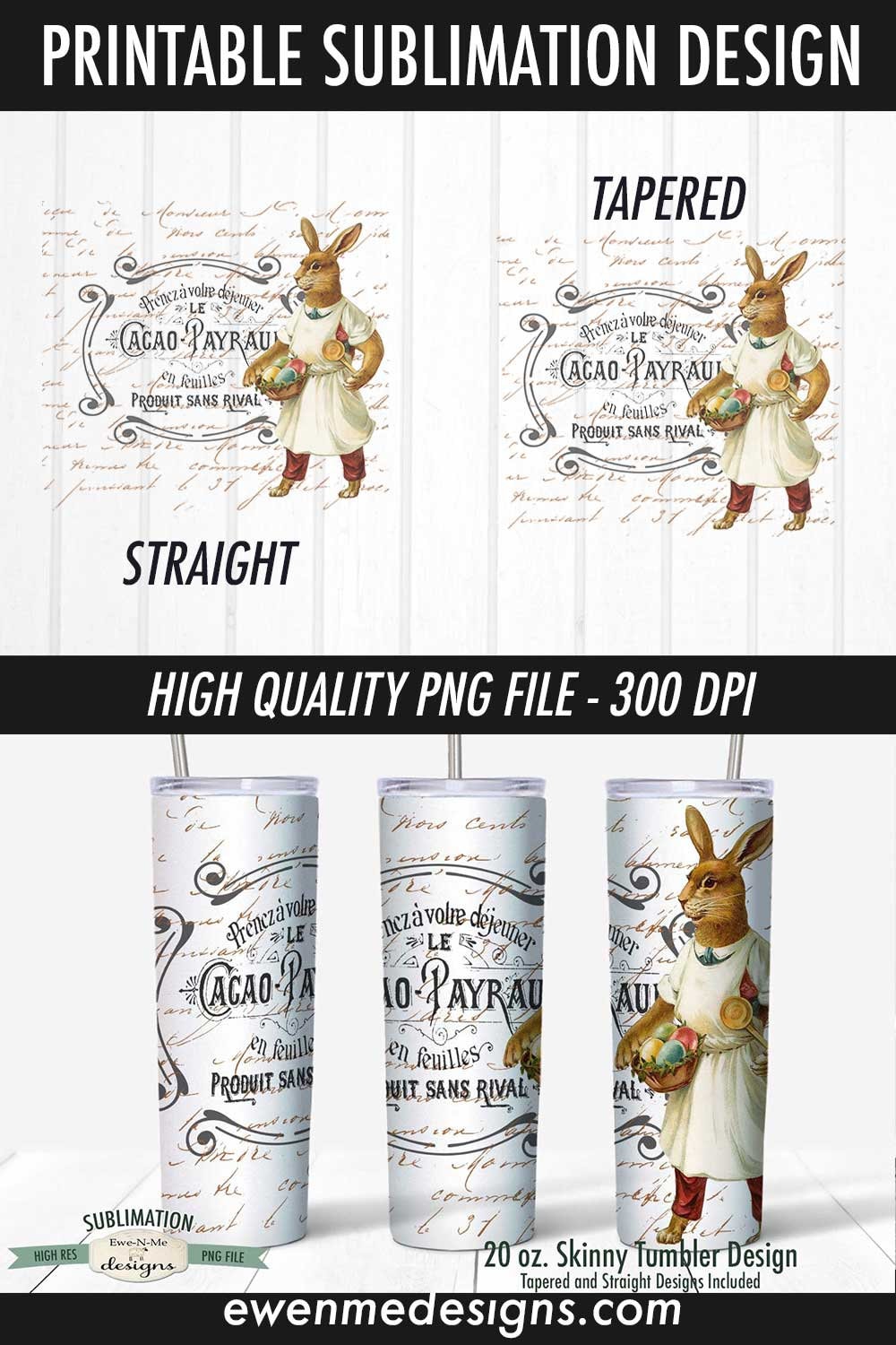Vintage Easter Sublimation Design - Standing Easter Rabbit with Eggs Tumbler Sublimation - Sublimation 20 oz. Tumbler Straight Tapered
